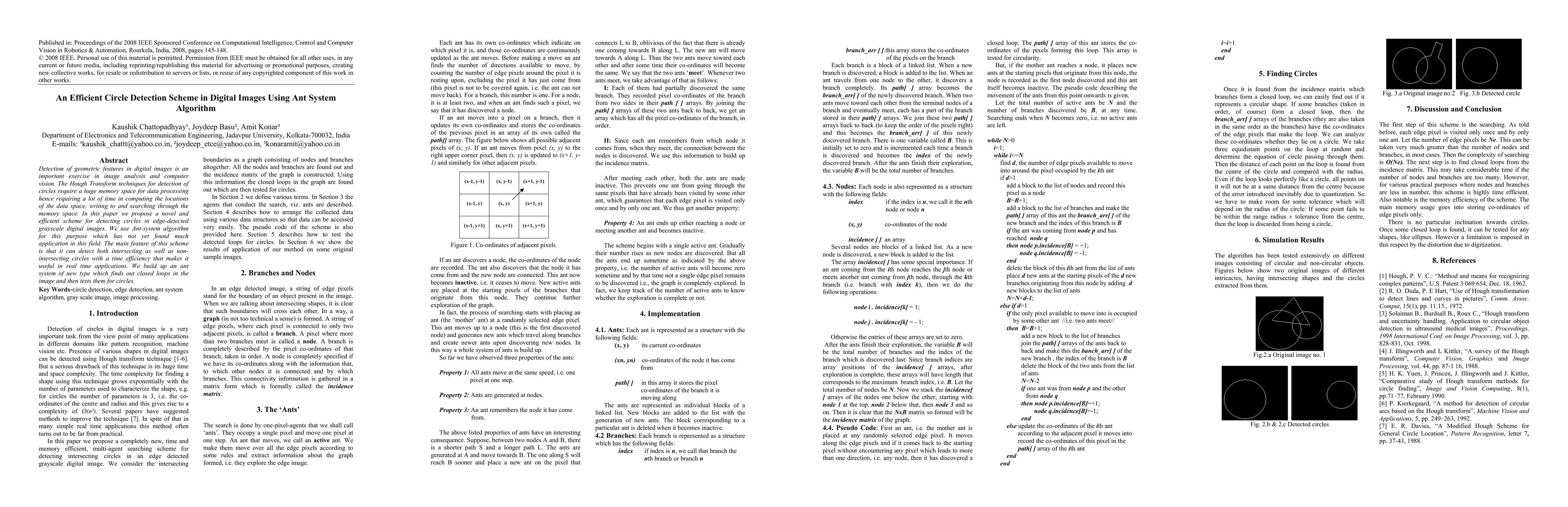 Detection of geometric features in digital images is an important exercise in image analysis and computer vision. The Hough Transform techniques for detection of circles require a huge memory space for data processing hence requiring a lot of time in computing the locations of the data space, writing to and searching through the memory space. In this paper we propose a novel and efficient scheme for detecting circles in edge-detected grayscale digital images. We use Ant-system algorithm for this purpose which has not yet found much application in this field. The main feature of this scheme is that it can detect both intersecting as well as non-intersecting circles with a time efficiency that makes it useful in real time applications. We build up an ant system of new type which finds out closed loops in the image and then tests them for circles.