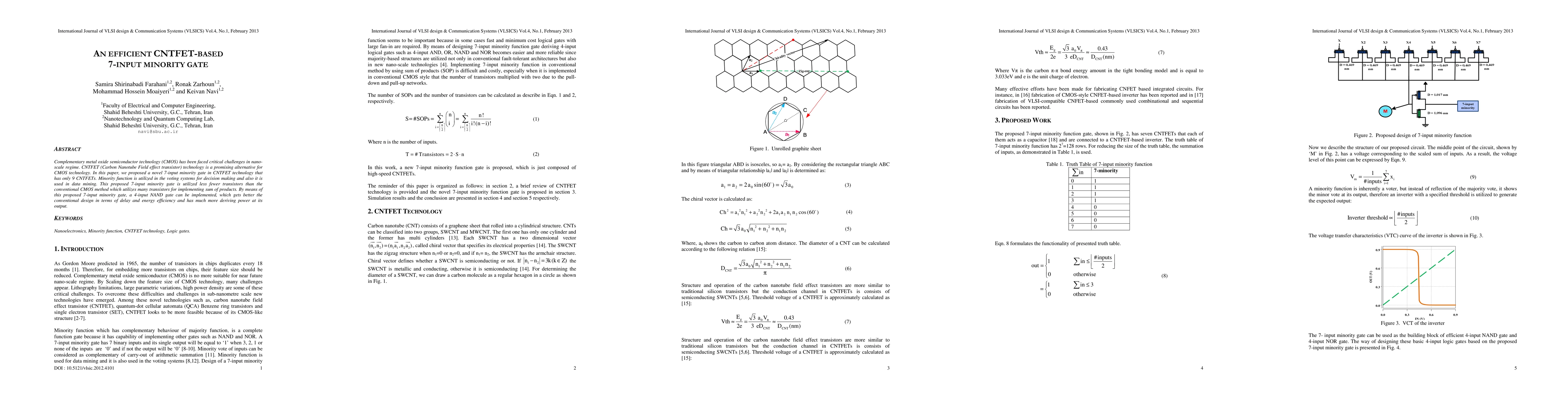 This paper proposes a novel 7-input minority gate using CNTFET technology, which uses fewer transistors than traditional CMOS methods. It outperforms conventional designs in terms of delay and energy efficiency, while providing more deriving power at the output.