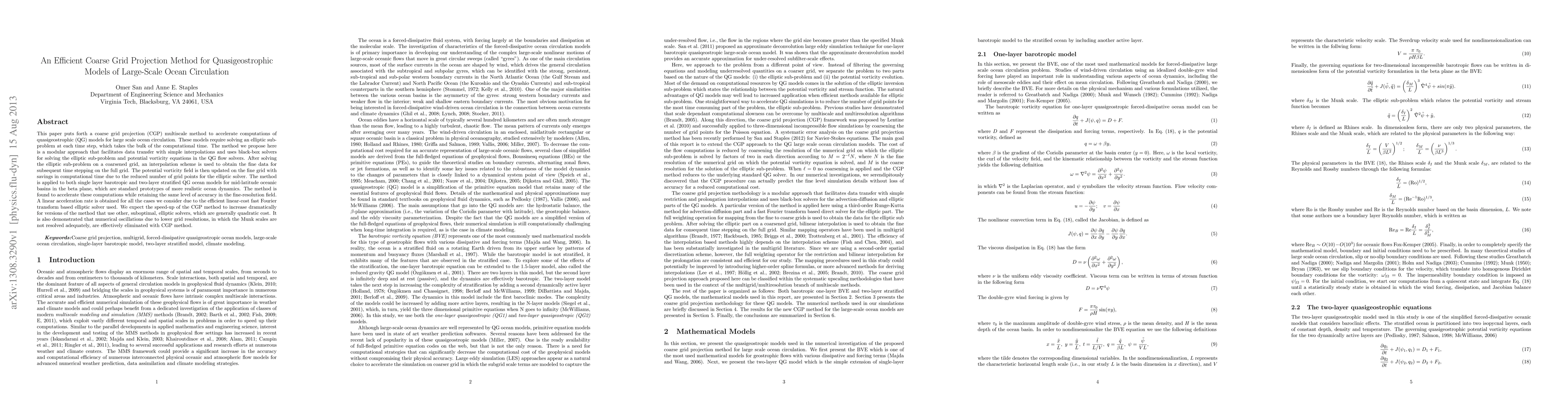 A new method called Coarse Grid Projection (CGP) accelerates ocean circulation simulations by solving an elliptic sub-problem on a coarser grid, reducing computational time while maintaining accuracy.