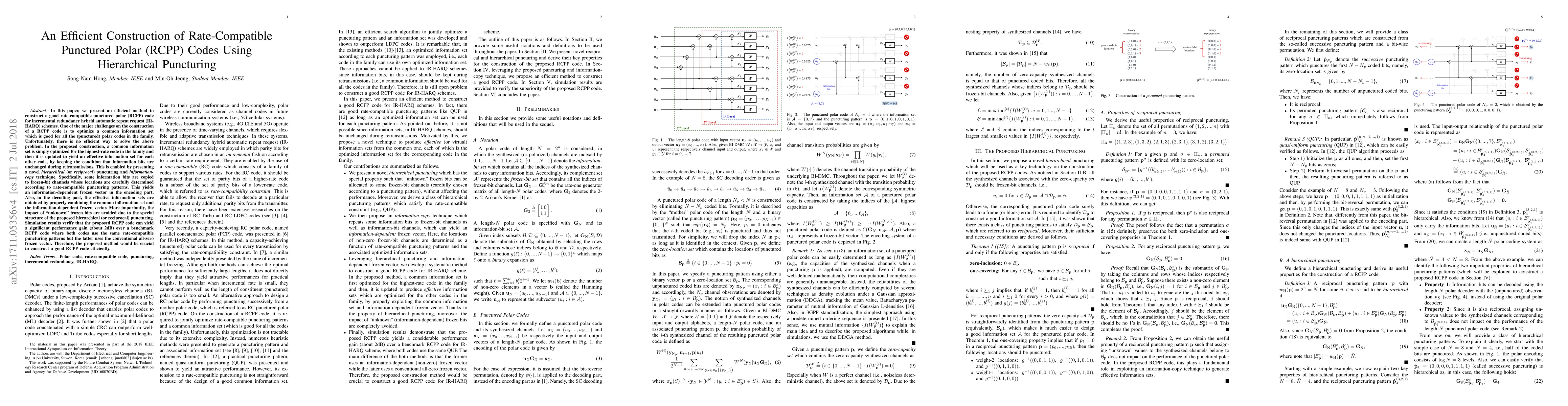 This paper proposes an efficient method for constructing rate-compatible punctured polar (RCPP) codes using hierarchical puncturing. It optimizes a common information set for the highest-rate code and updates it for other codes while maintaining unchanged information bits, achieving a significant 2dB performance gain over conventional methods.