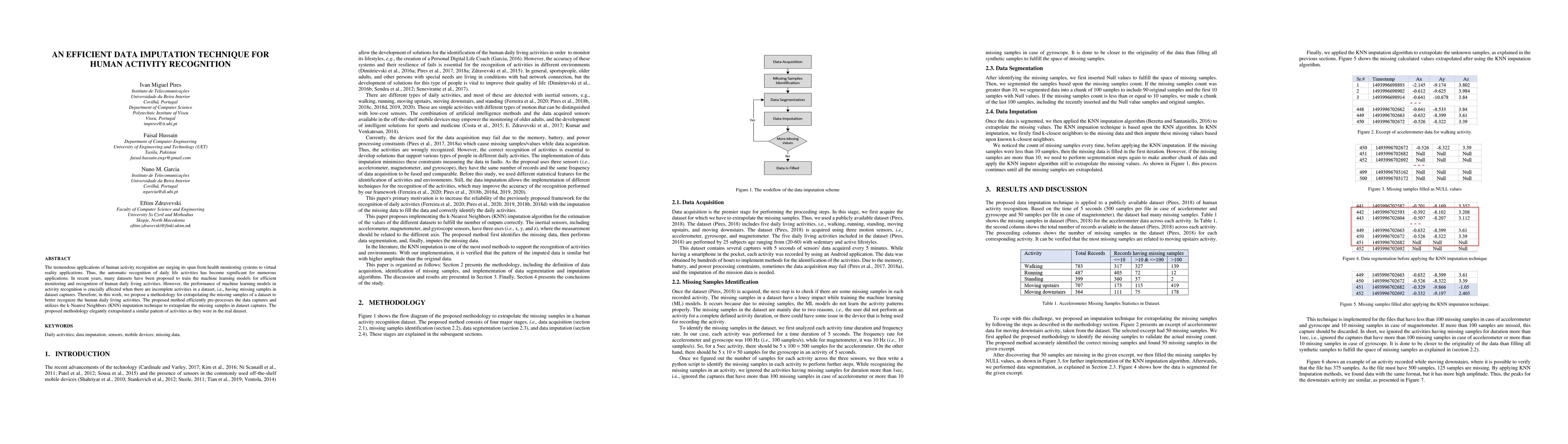 This paper proposes a k-Nearest Neighbors (KNN) imputation technique to efficiently extrapolate missing samples in datasets used for human activity recognition, thereby improving the accuracy of machine learning models in recognizing daily life activities. The method successfully replicates the patterns of real datasets, enhancing the performance of activity recognition systems.