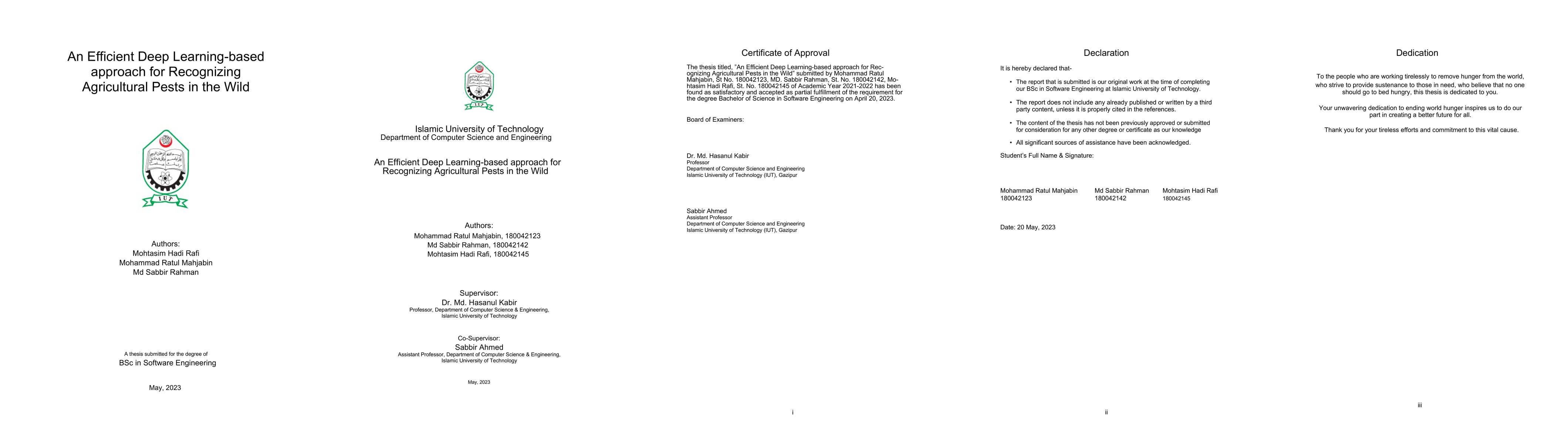 This paper proposes a deep learning-based approach for recognizing agricultural pests using a robust dataset, IP102, and explores methods like transfer learning, attention mechanisms, and custom architectures to achieve accurate pest identification, aiming to reduce economic losses for farmers. Experiments also demonstrate the robustness of the techniques using another dataset, D0.