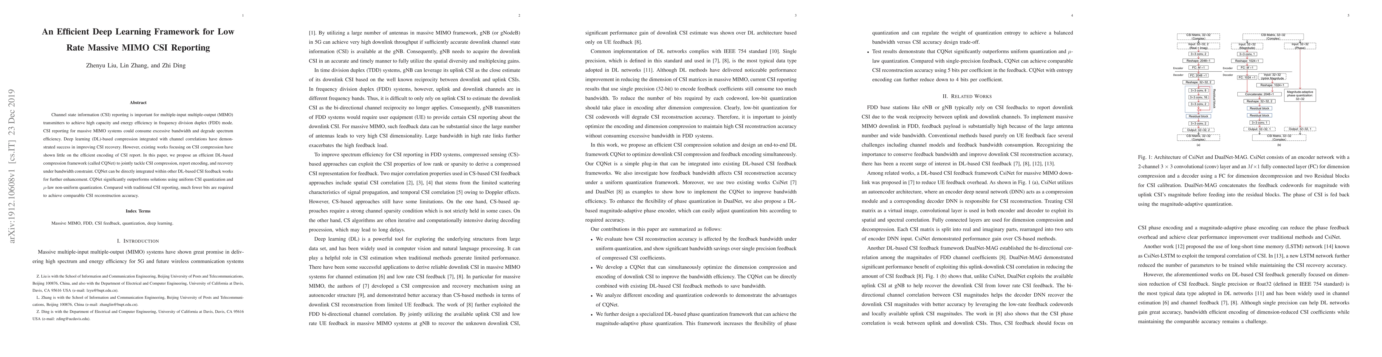This paper proposes CQNet, an efficient deep learning framework for compressing and encoding channel state information (CSI) in massive MIMO systems, significantly reducing required bits for comparable accuracy compared to traditional methods. CQNet integrates deep learning-based compression and report encoding to enhance spectrum efficiency.