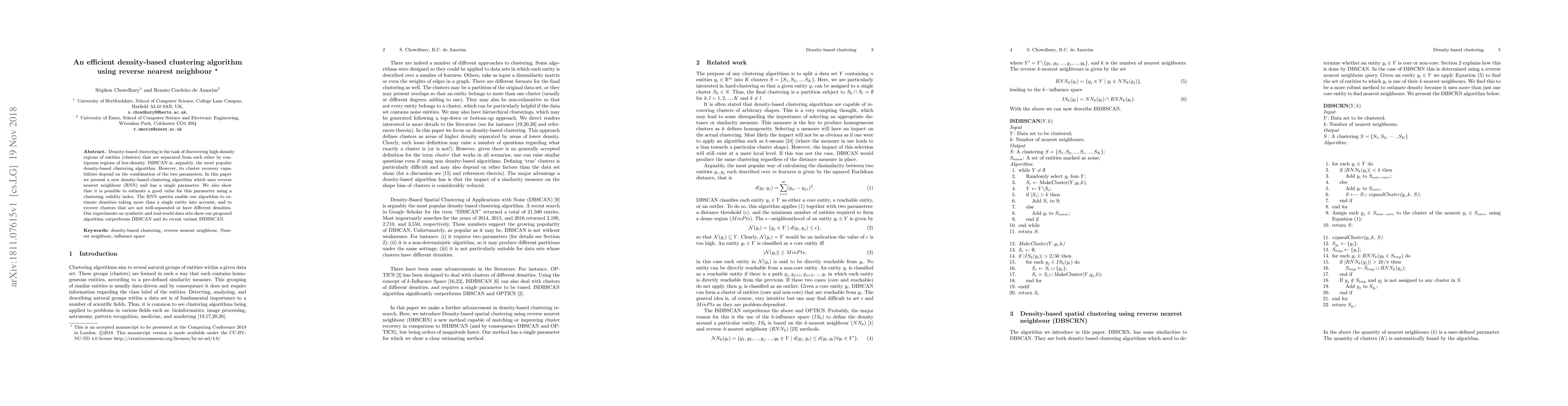 This paper introduces a new density-based clustering algorithm utilizing reverse nearest neighbour (RNN) queries with a single parameter, which outperforms DBSCAN and ISDBSCAN on both synthetic and real datasets. The algorithm estimates densities considering multiple entities and effectively recovers clusters with varying densities.