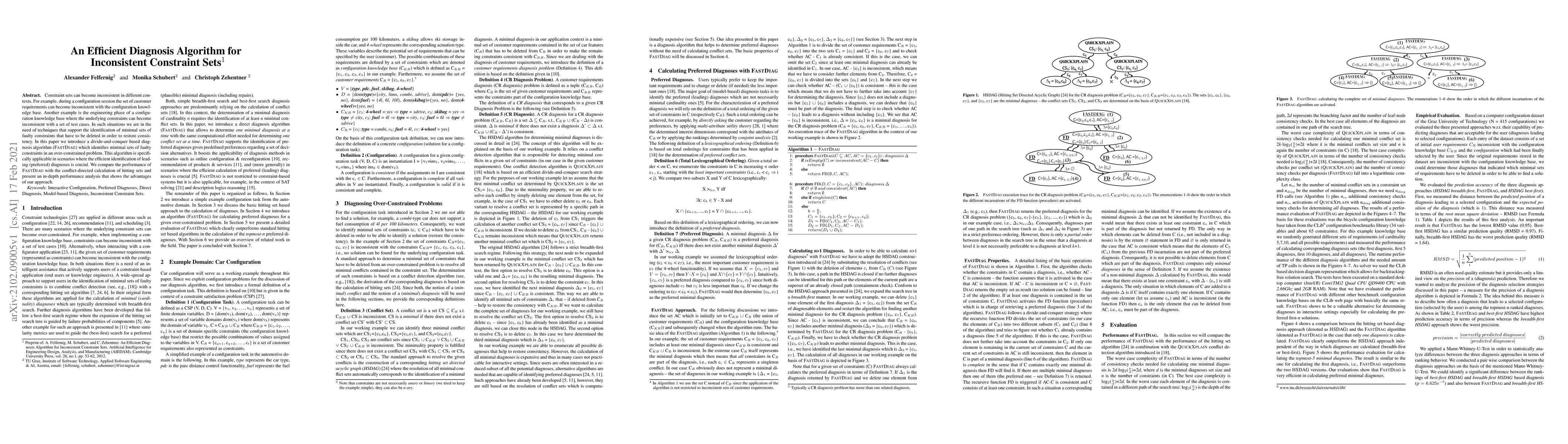 This paper introduces FastDiag, a divide-and-conquer diagnosis algorithm for identifying minimal sets of inconsistent constraints in over-constrained problems. The algorithm outperforms conflict-directed calculation of hitting sets, as demonstrated through a detailed performance analysis.
