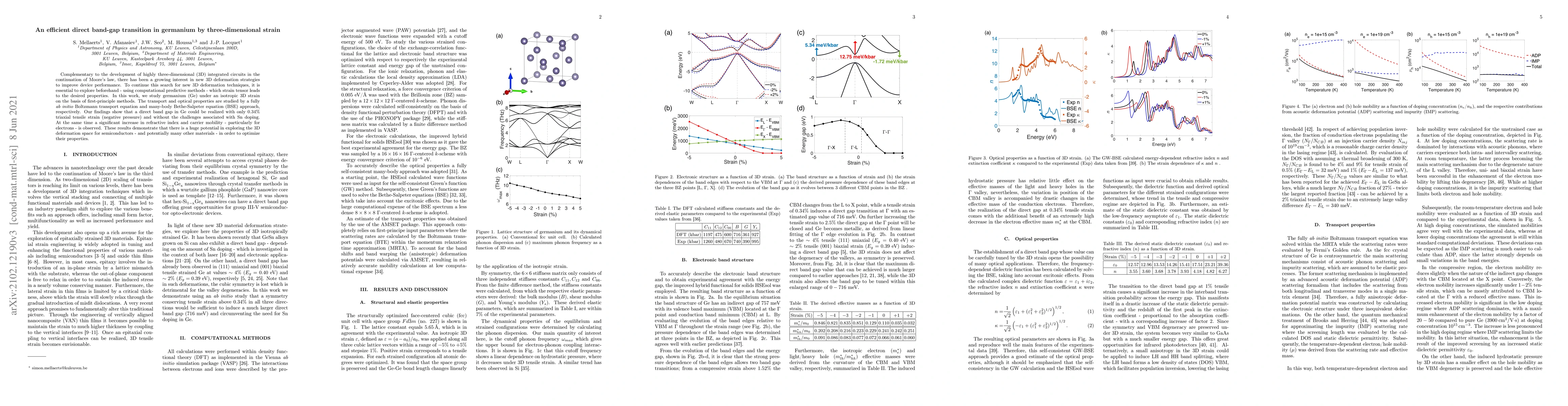 This research demonstrates that applying 0.34% triaxial tensile strain can induce a direct band gap in germanium, enhancing its transport and optical properties without the need for Sn doping. The findings suggest significant potential for optimizing semiconductor properties through three-dimensional strain engineering.