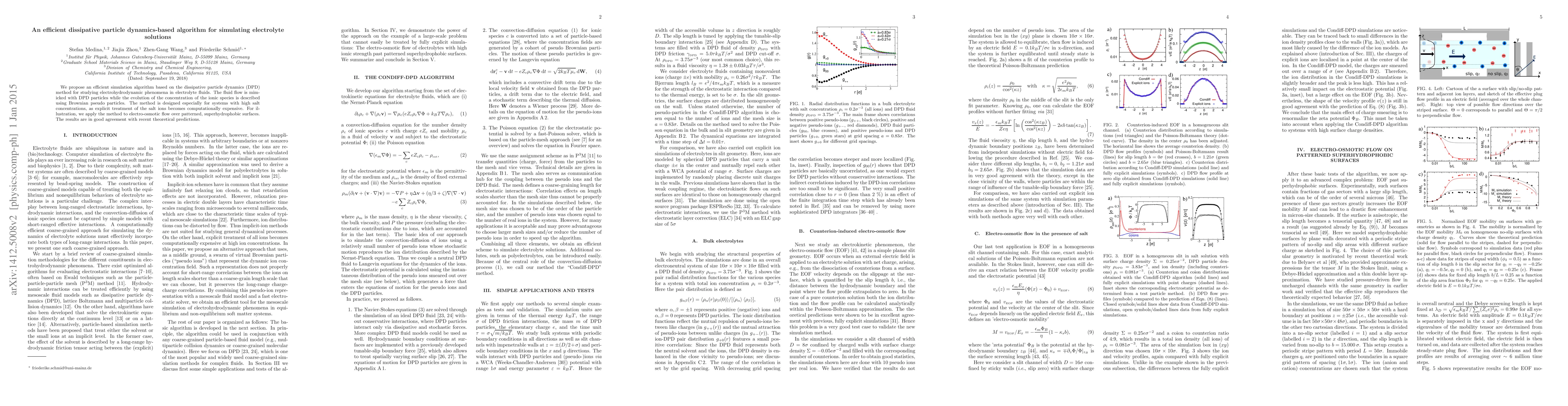 This paper proposes an efficient DPD-based algorithm to simulate electrohydrodynamic phenomena in electrolyte solutions, using DPD particles for fluid flow and Brownian pseudo particles for ionic species. The method is particularly effective for high salt concentration systems, demonstrated through electro-osmotic flow simulations on superhydrophobic surfaces.