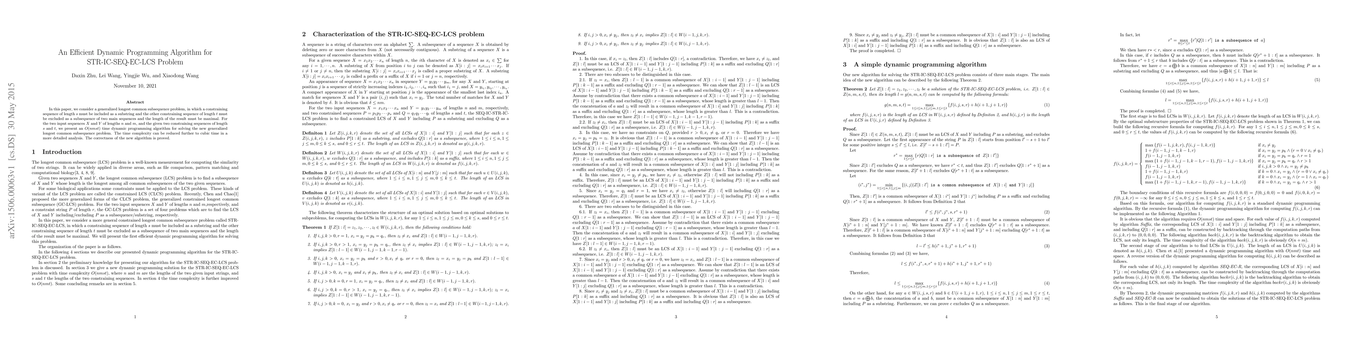 This paper presents an efficient dynamic programming algorithm for a generalized longest common subsequence problem where specific sequences must be included and excluded. The proposed $O(nmst)$ time algorithm can be further optimized, and its correctness is rigorously proven.
