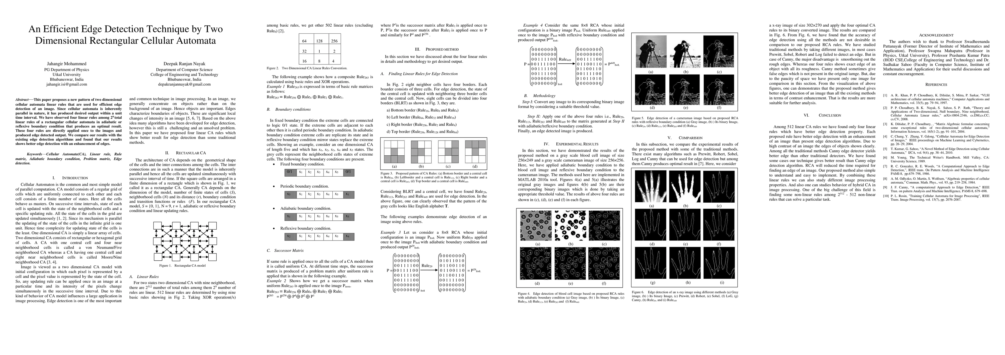 This paper introduces a new two-dimensional cellular automata technique for efficient edge detection, utilizing four optimal linear rules from a set of 512. The method demonstrates superior edge detection performance compared to existing algorithms.