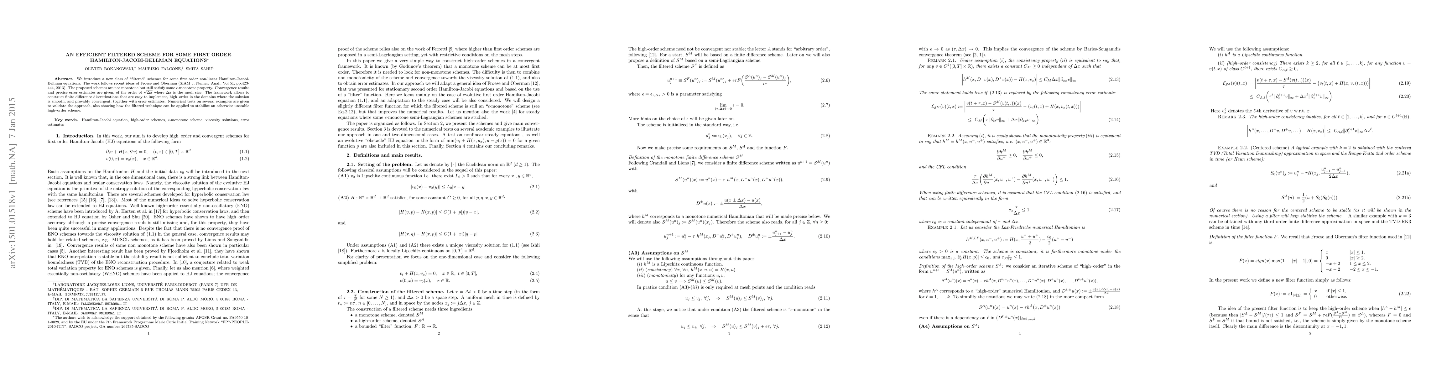 We introduce a new class of "filtered" schemes for some first order non-linear Hamilton-Jacobi-Bellman equations. The work follows recent ideas of Froese and Oberman (SIAM J. Numer. Anal., Vol 51, pp.423-444, 2013). The proposed schemes are not monotone but still satisfy some $\epsilon$-monotone property. Convergence results and precise error estimates are given, of the order of $\sqrt{\Delta x}$ where $\Delta x$ is the mesh size. The framework allows to construct finite difference discretizations that are easy to implement, high--order in the domains where the solution is smooth, and provably convergent, together with error estimates. Numerical tests on several examples are given to validate the approach, also showing how the filtered technique can be applied to stabilize an otherwise unstable high--order scheme.