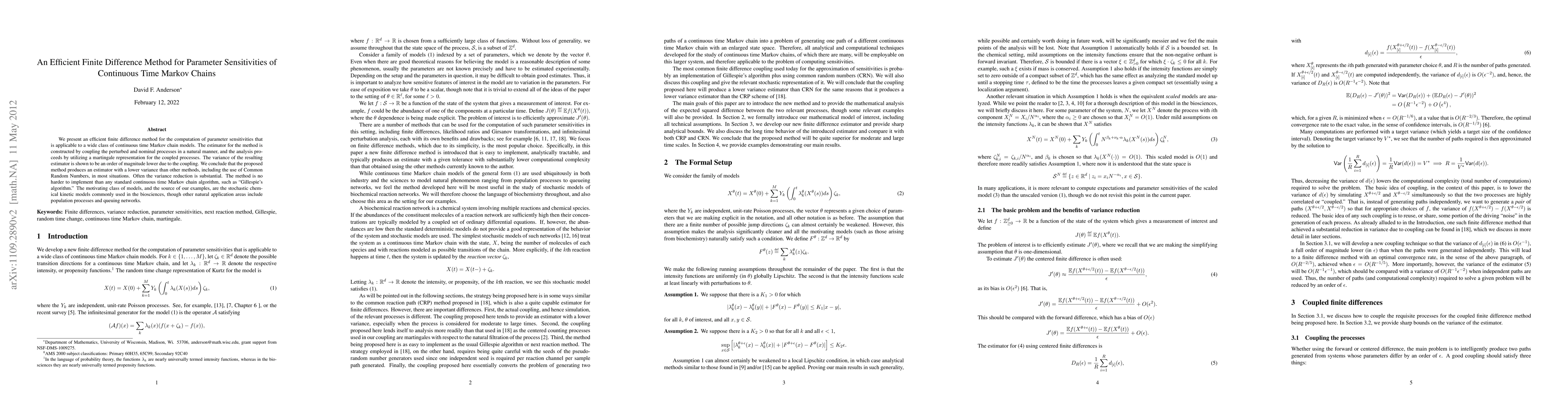 A new method for estimating parameter sensitivities in continuous time Markov chains is proposed, which reduces variance by coupling the perturbed and nominal processes, making it more efficient and accurate than existing methods.