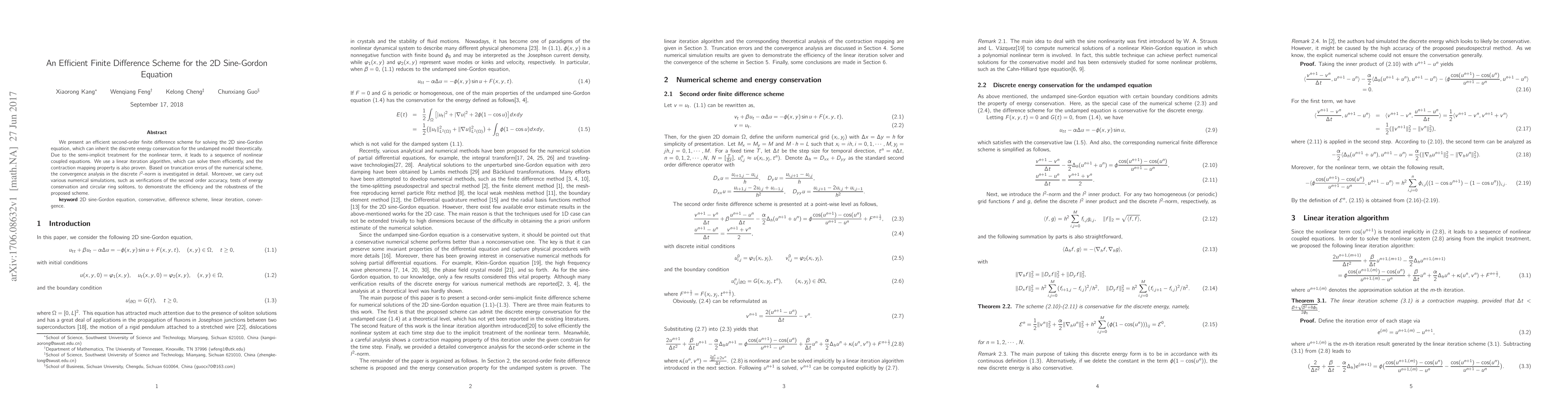 Researchers developed a second-order finite difference scheme to solve the 2D sine-Gordon equation with discrete energy conservation, using a linear iteration algorithm and proving convergence in the $l^2$-norm.