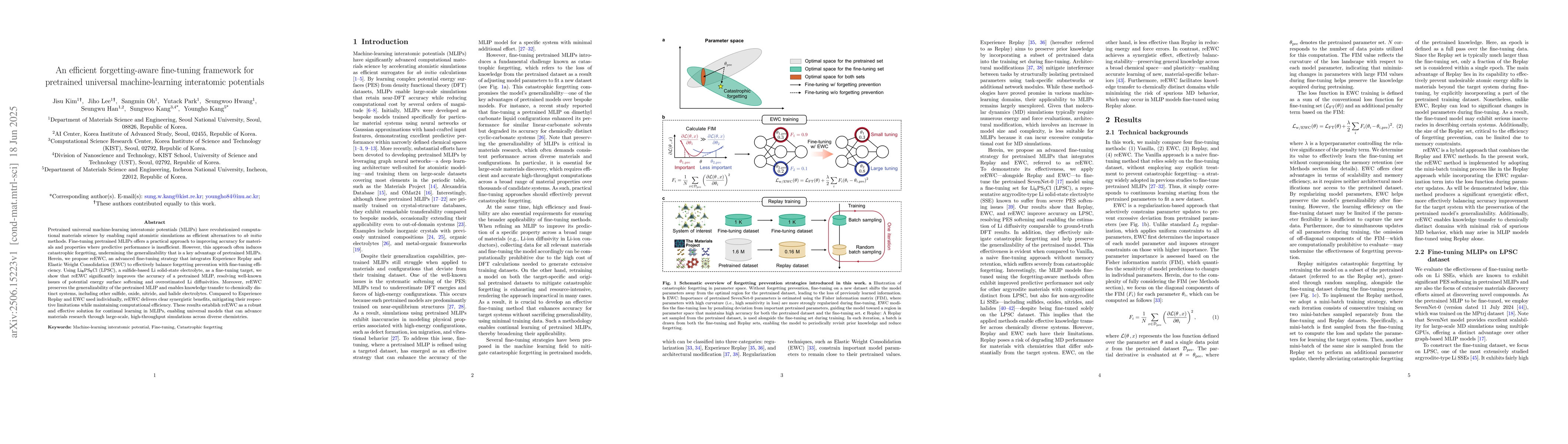 Pretrained universal machine-learning interatomic potentials (MLIPs) have revolutionized computational materials science by enabling rapid atomistic simulations as efficient alternatives to ab initio methods. Fine-tuning pretrained MLIPs offers a practical approach to improving accuracy for materials and properties where predictive performance is insufficient. However, this approach often induces catastrophic forgetting, undermining the generalizability that is a key advantage of pretrained MLIPs. Herein, we propose reEWC, an advanced fine-tuning strategy that integrates Experience Replay and Elastic Weight Consolidation (EWC) to effectively balance forgetting prevention with fine-tuning efficiency. Using Li$_6$PS$_5$Cl (LPSC), a sulfide-based Li solid-state electrolyte, as a fine-tuning target, we show that reEWC significantly improves the accuracy of a pretrained MLIP, resolving well-known issues of potential energy surface softening and overestimated Li diffusivities. Moreover, reEWC preserves the generalizability of the pretrained MLIP and enables knowledge transfer to chemically distinct systems, including other sulfide, oxide, nitride, and halide electrolytes. Compared to Experience Replay and EWC used individually, reEWC delivers clear synergistic benefits, mitigating their respective limitations while maintaining computational efficiency. These results establish reEWC as a robust and effective solution for continual learning in MLIPs, enabling universal models that can advance materials research through large-scale, high-throughput simulations across diverse chemistries.