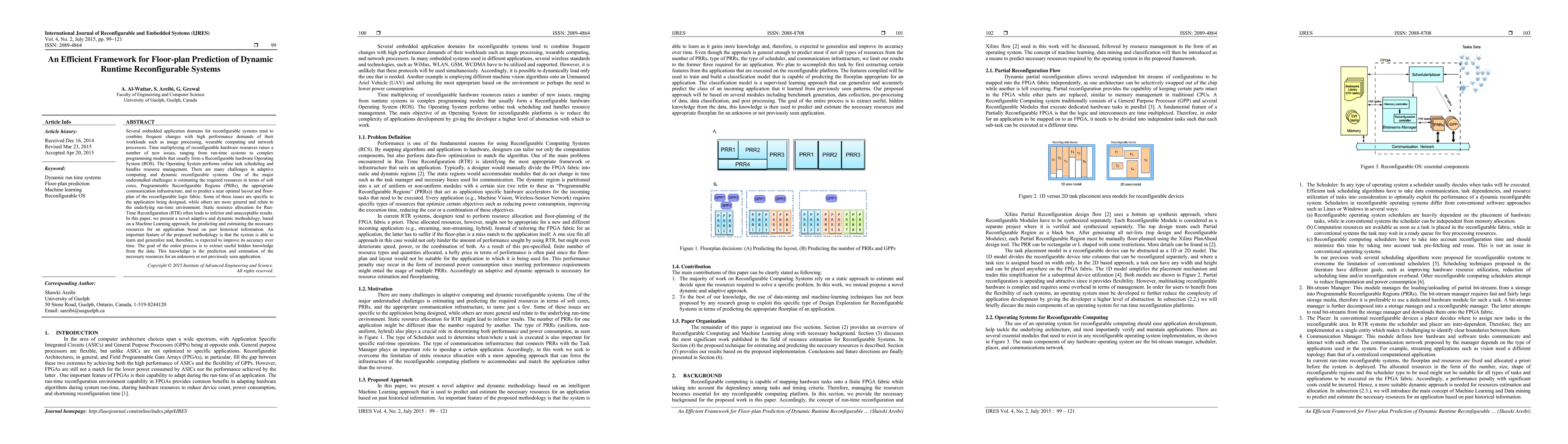 This paper introduces a novel adaptive framework using Machine Learning to predict and estimate the necessary resources for dynamic runtime reconfigurable systems, focusing on optimizing floor-plan layouts based on historical data. The methodology aims to improve accuracy over time through learning and generalization, addressing challenges in resource allocation for applications like image processing and wearable computing.