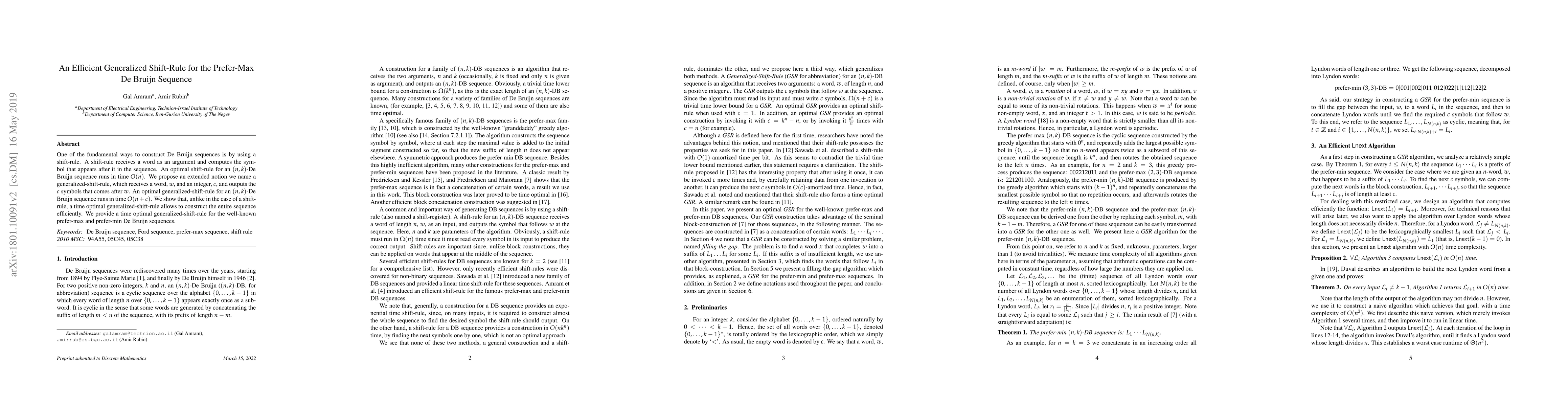 One of the fundamental ways to construct De Bruijn sequences is by using a shift-rule. A shift-rule receives a word as an argument and computes the symbol that appears after it in the sequence. An optimal shift-rule for an $(n,k)$-De Bruijn sequence runs in time $O(n)$. We propose an extended notion we name a generalized-shift-rule, which receives a word, $w$, and an integer, $c$, and outputs the $c$ symbols that comes after $w$. An optimal generalized-shift-rule for an $(n,k)$-De Bruijn sequence runs in time $O(n+c)$. We show that, unlike in the case of a shift-rule, a time optimal generalized-shift-rule allows to construct the entire sequence efficiently. We provide a time optimal generalized-shift-rule for the well-known prefer-max and prefer-min De Bruijn sequences.