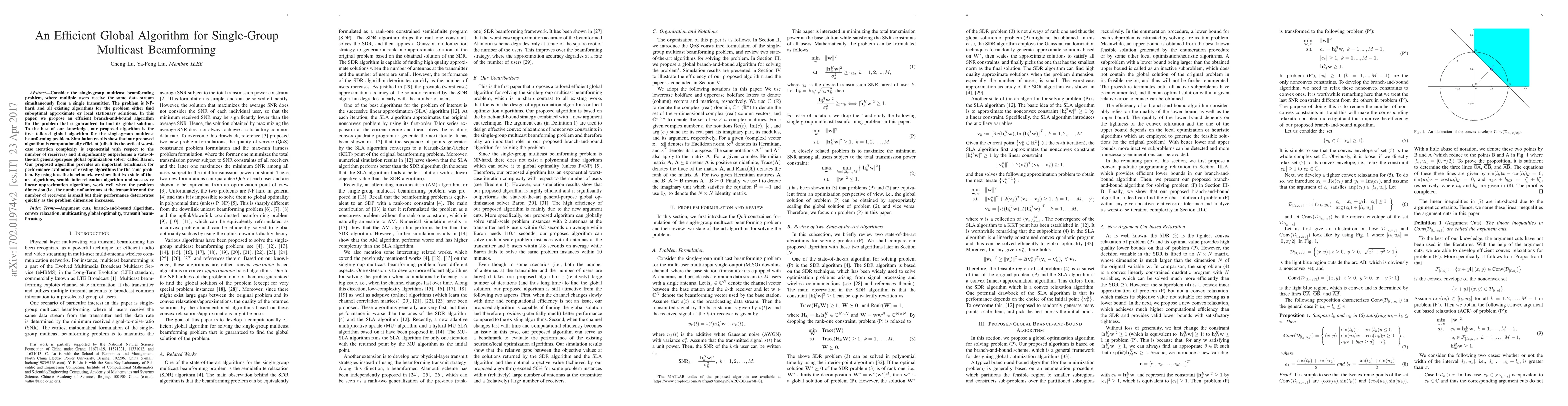 The paper proposes an efficient branch-and-bound algorithm for the single-group multicast beamforming problem, which is NP-hard. The algorithm is guaranteed to find the global solution, unlike existing suboptimal or local stationary solutions.