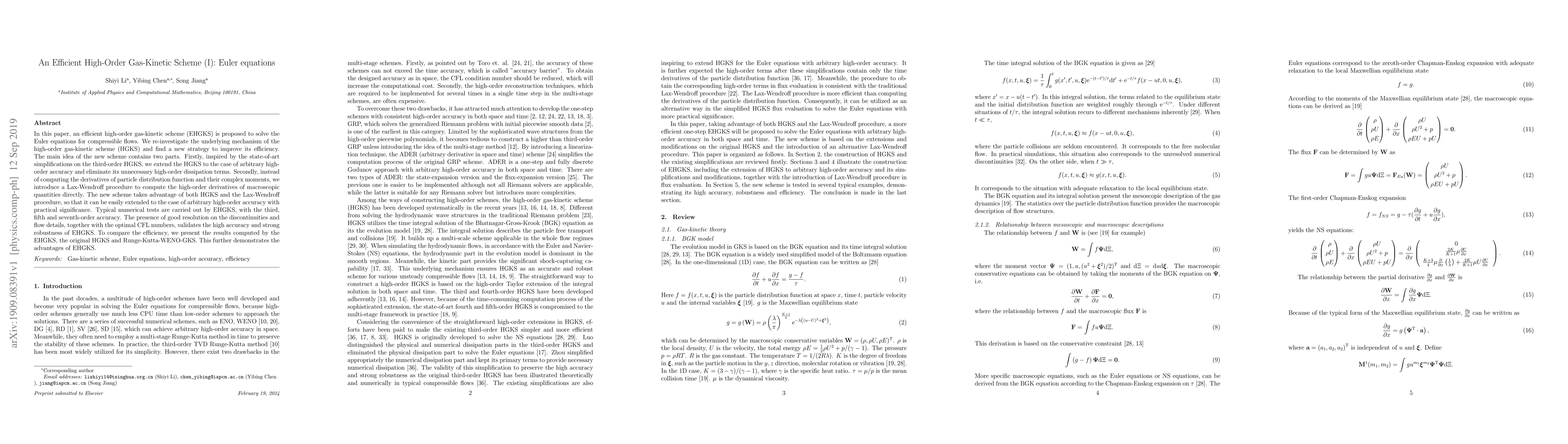 Researchers propose an efficient high-order gas-kinetic scheme for solving Euler equations in compressible flows, achieving improved accuracy and efficiency through a new strategy combining high-order gas-kinetic scheme and Lax-Wendroff procedure.
