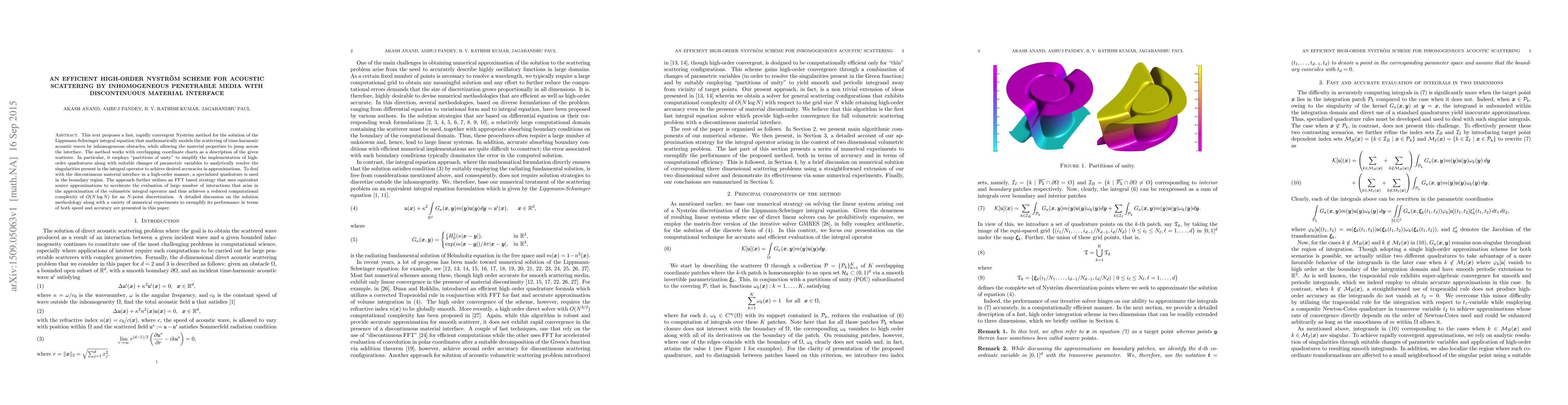 Researchers developed a fast Nystr"{o}m method to model acoustic scattering in inhomogeneous materials with discontinuous interfaces, achieving O(N log N) computational complexity.