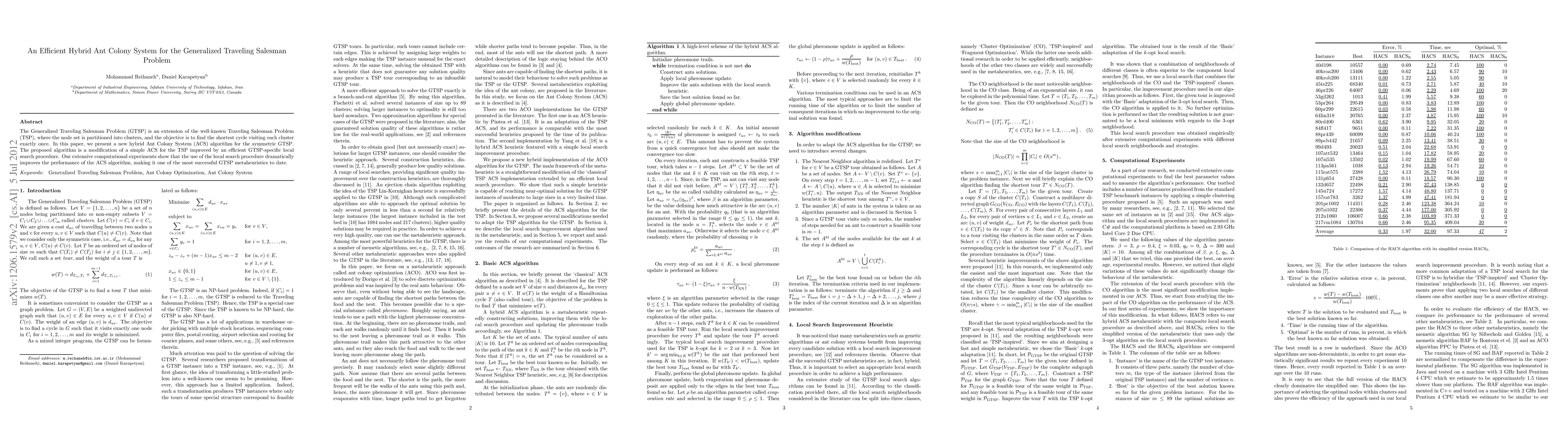 This paper introduces a hybrid Ant Colony System (ACS) algorithm tailored for the Generalized Traveling Salesman Problem (GTSP), combining a standard ACS for TSP with an enhanced GTSP-specific local search. Experimental results demonstrate significant performance improvements, positioning it as a leading GTSP metaheuristic.