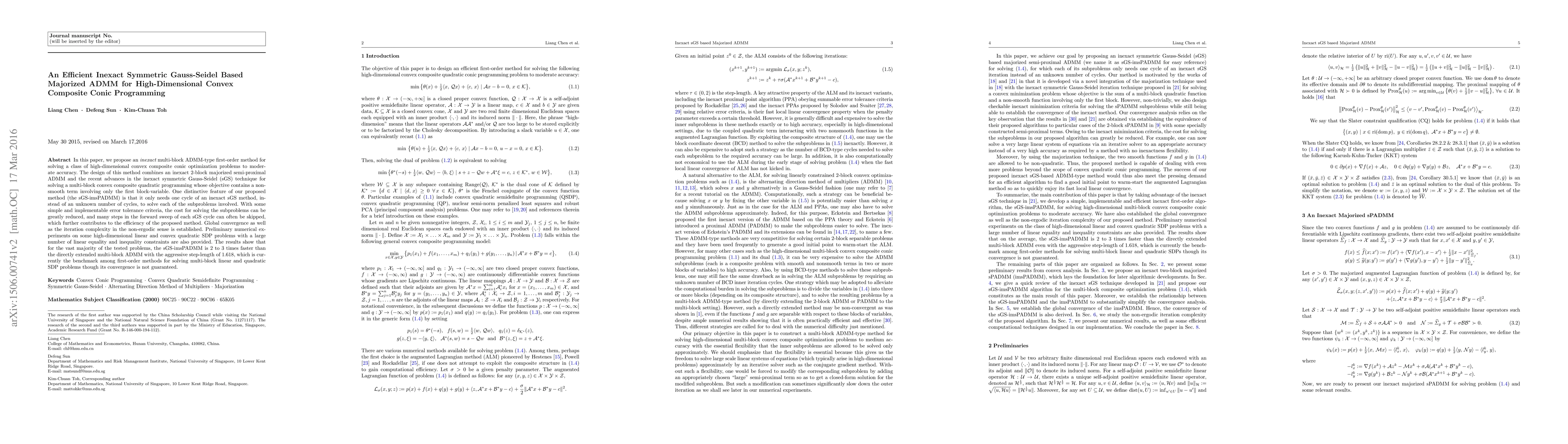 This paper proposes an efficient inexact symmetric Gauss-Seidel based ADMM method (sGS-imsPADMM) for solving high-dimensional convex composite conic optimization problems. The method significantly reduces computational cost by requiring only one cycle of the inexact sGS technique per subproblem, demonstrating 2 to 3 times faster performance compared to the current benchmark.