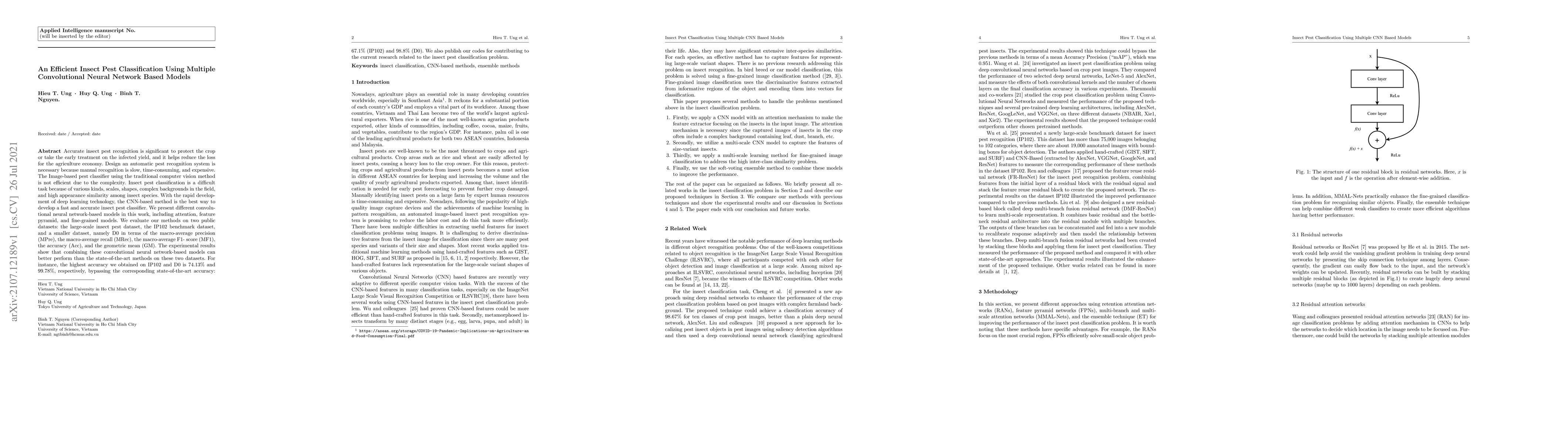 Accurate insect pest recognition is significant to protect the crop or take the early treatment on the infected yield, and it helps reduce the loss for the agriculture economy. Design an automatic pest recognition system is necessary because manual recognition is slow, time-consuming, and expensive. The Image-based pest classifier using the traditional computer vision method is not efficient due to the complexity. Insect pest classification is a difficult task because of various kinds, scales, shapes, complex backgrounds in the field, and high appearance similarity among insect species. With the rapid development of deep learning technology, the CNN-based method is the best way to develop a fast and accurate insect pest classifier. We present different convolutional neural network-based models in this work, including attention, feature pyramid, and fine-grained models. We evaluate our methods on two public datasets: the large-scale insect pest dataset, the IP102 benchmark dataset, and a smaller dataset, namely D0 in terms of the macro-average precision (MPre), the macro-average recall (MRec), the macro-average F1- score (MF1), the accuracy (Acc), and the geometric mean (GM). The experimental results show that combining these convolutional neural network-based models can better perform than the state-of-the-art methods on these two datasets. For instance, the highest accuracy we obtained on IP102 and D0 is $74.13\%$ and $99.78\%$, respectively, bypassing the corresponding state-of-the-art accuracy: $67.1\%$ (IP102) and $98.8\%$ (D0). We also publish our codes for contributing to the current research related to the insect pest classification problem.