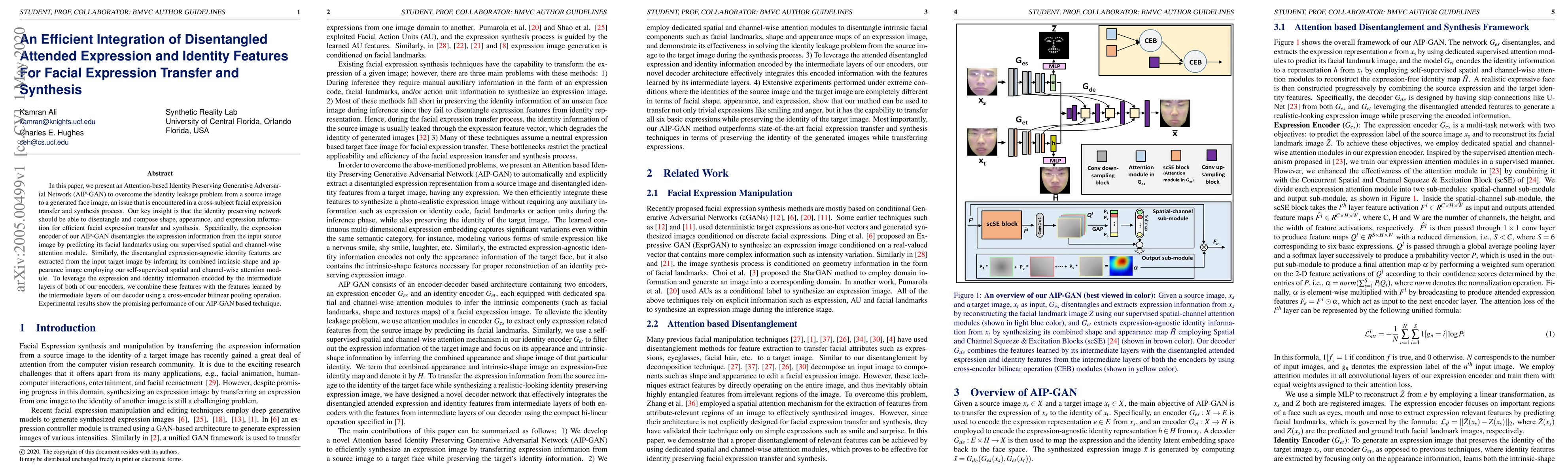 This paper introduces an Attention-based Identity Preserving Generative Adversarial Network (AIP-GAN) to address identity leakage in facial expression transfer and synthesis. The AIP-GAN disentangles expression and identity features using attention modules, enabling efficient and identity-preserving facial expression transfer.