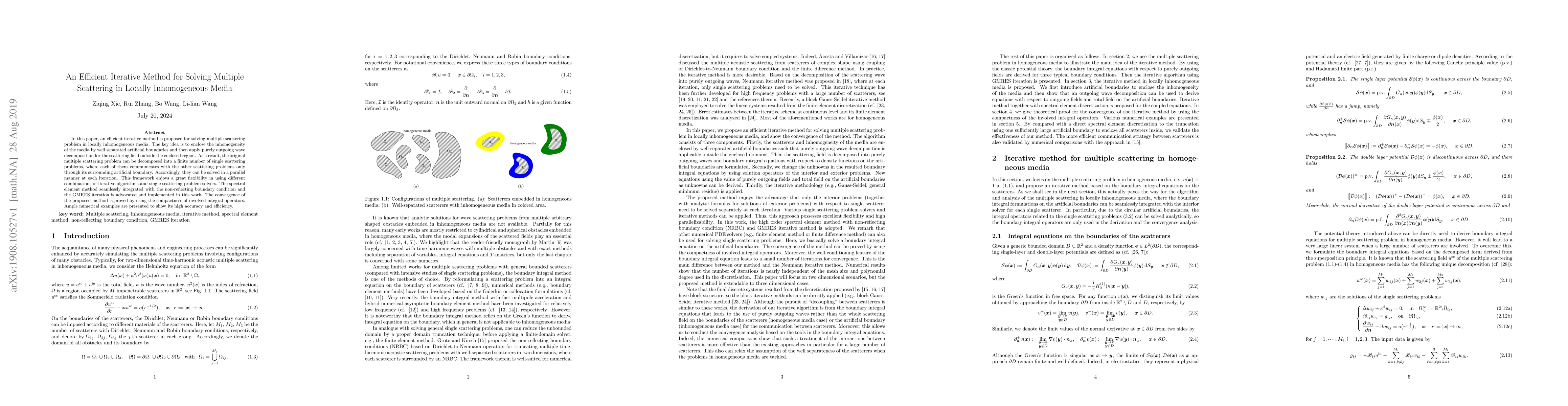 This paper proposes an efficient iterative method for solving multiple scattering in locally inhomogeneous media by decomposing the problem into single scattering problems using artificial boundaries. The spectral element method and GMRES iteration are used, demonstrating high accuracy and efficiency through numerical examples.