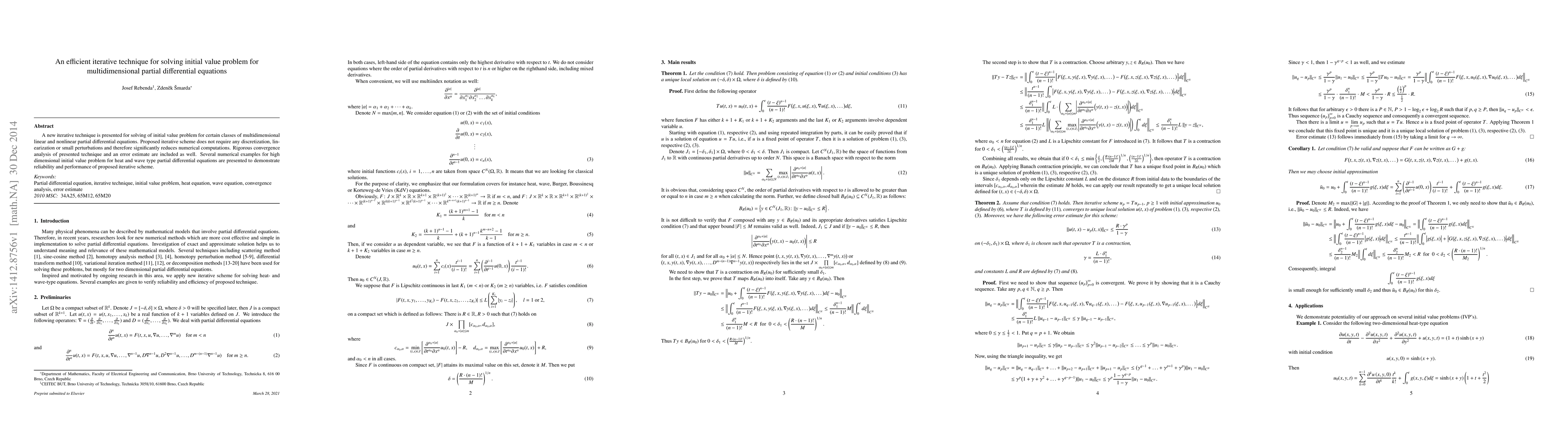 A new iterative technique is presented for solving of initial value problem for certain classes of multidimensional linear and nonlinear partial differential equations. Proposed iterative scheme does not require any discretization, linearization or small perturbations and therefore significantly reduces numerical computations. Rigorous convergence analysis of presented technique and an error estimate are included as well. Several numerical examples for high dimensional initial value problem for heat and wave type partial differential equations are presented to demonstrate reliability and performance of proposed iterative scheme.