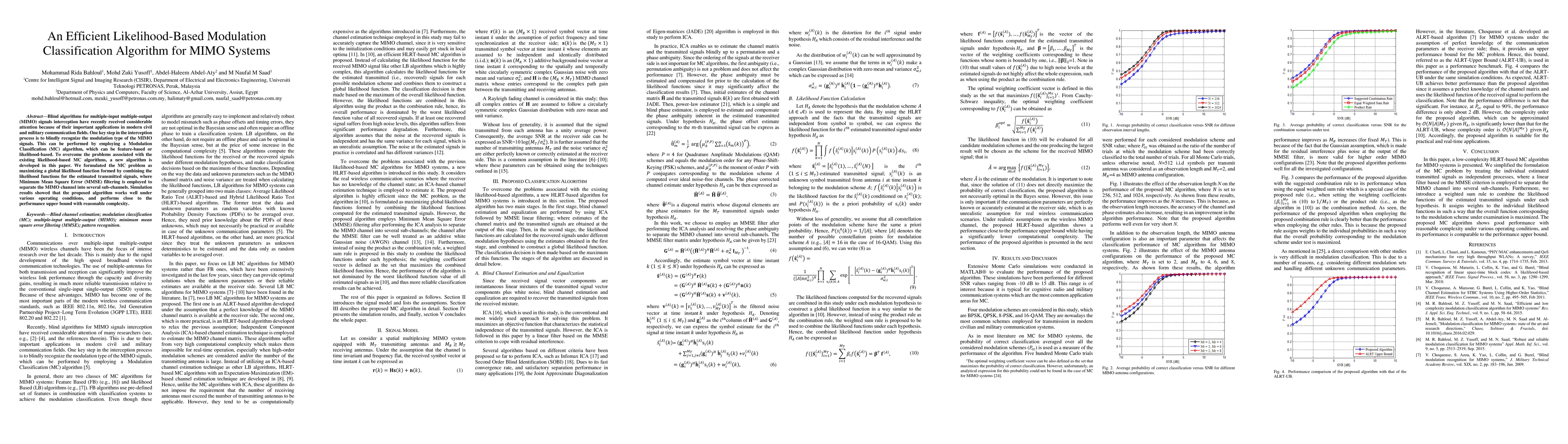 A new likelihood-based modulation classification algorithm for MIMO systems is proposed to improve interception performance under various conditions. The algorithm achieves close-to-upper-bound performance with reasonable complexity.