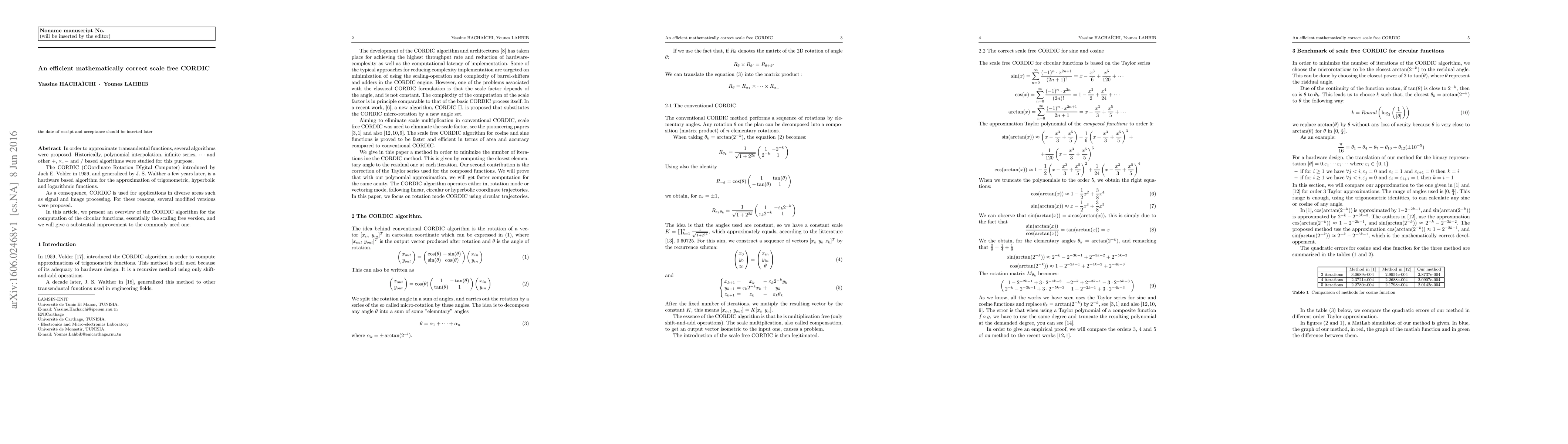 This paper reviews the CORDIC algorithm, a hardware-based method for approximating trigonometric, hyperbolic, and logarithmic functions, and presents a mathematically correct, scale-free version with substantial improvements over existing versions. The enhanced CORDIC variant is applicable in diverse fields like signal and image processing.