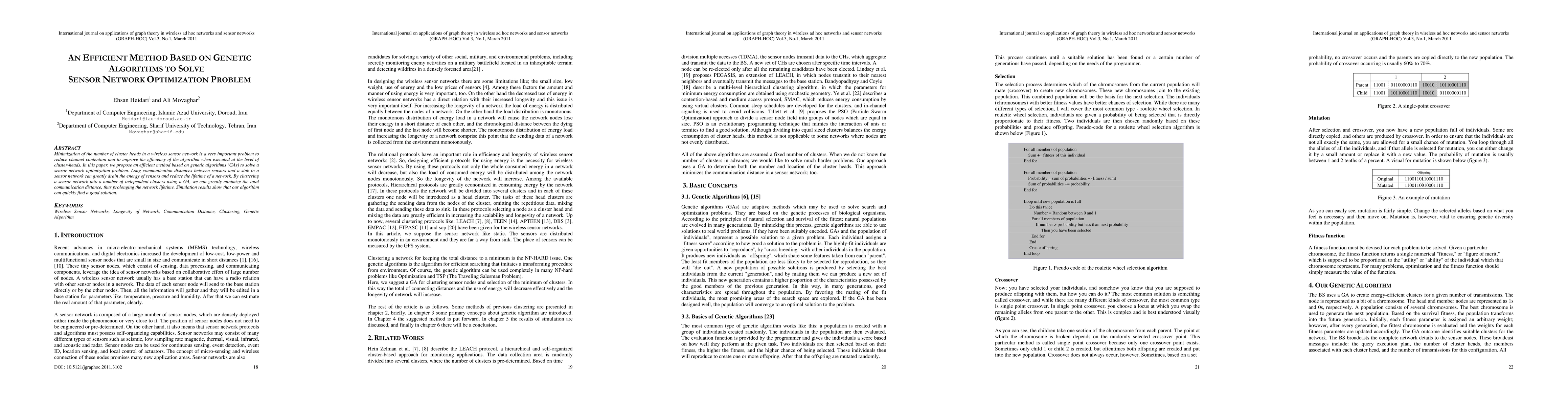 Minimization of the number of cluster heads in a wireless sensor network is a very important problem to reduce channel contention and to improve the efficiency of the algorithm when executed at the level of cluster-heads. In this paper, we propose an efficient method based on genetic algorithms (GAs) to solve a sensor network optimization problem. Long communication distances between sensors and a sink in a sensor network can greatly drain the energy of sensors and reduce the lifetime of a network. By clustering a sensor network into a number of independent clusters using a GA, we can greatly minimize the total communication distance, thus prolonging the network lifetime. Simulation results show that our algorithm can quickly find a good solution.