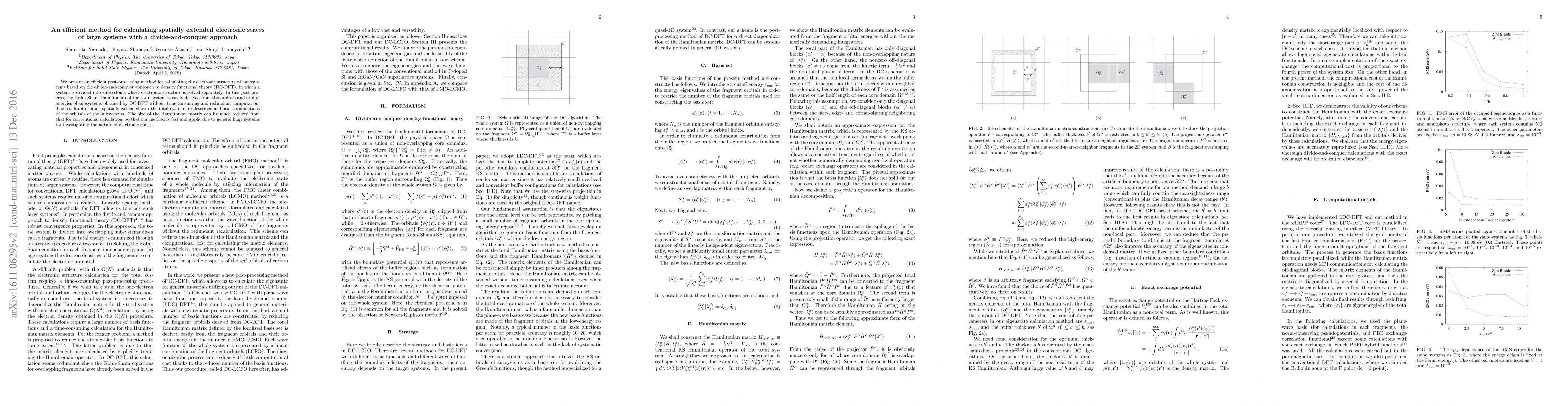 This paper introduces a divide-and-conquer approach to efficiently calculate the electronic structure of large nanosystems using density functional theory. The method reduces computational load by solving subsystems separately and combining their orbitals to describe the total system, significantly speeding up the process.