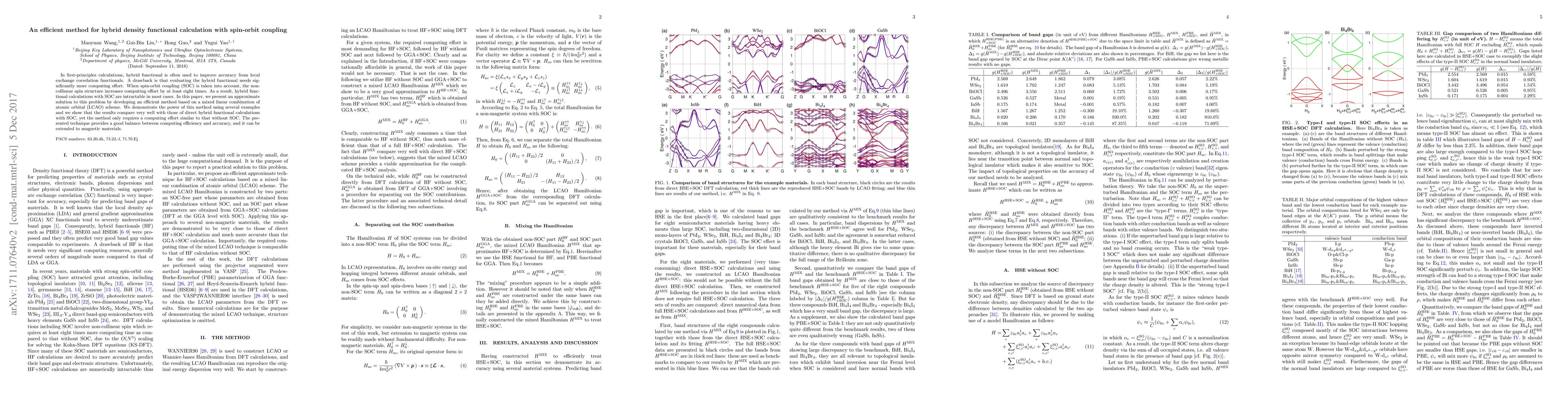 In first-principles calculations, hybrid functional is often used to improve accuracy from local exchange correlation functionals. A drawback is that evaluating the hybrid functional needs significantly more computing effort. When spin-orbit coupling (SOC) is taken into account, the non-collinear spin structure increases computing effort by at least eight times. As a result, hybrid functional calculations with SOC are intractable in most cases. In this paper, we present an approximate solution to this problem by developing an efficient method based on a mixed linear combination of atomic orbital (LCAO) scheme. We demonstrate the power of this method using several examples and we show that the results compare very well with those of direct hybrid functional calculations with SOC, yet the method only requires a computing effort similar to that without SOC. The presented technique provides a good balance between computing efficiency and accuracy, and it can be extended to magnetic materials.