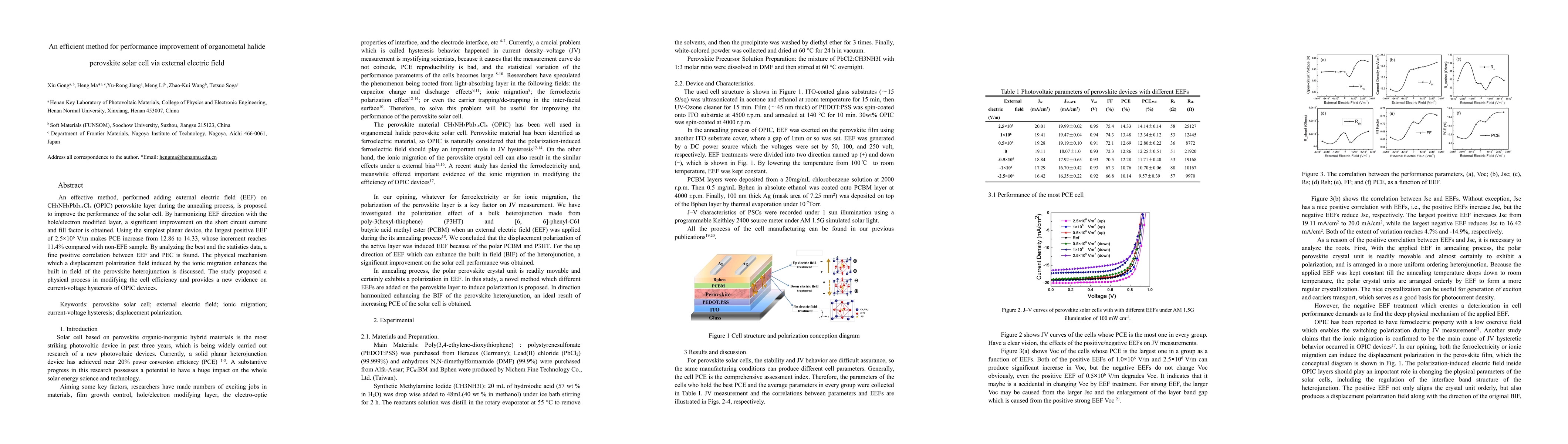 Researchers propose a method to improve perovskite solar cell performance by applying an external electric field during annealing, leading to a 11.4% increase in efficiency.