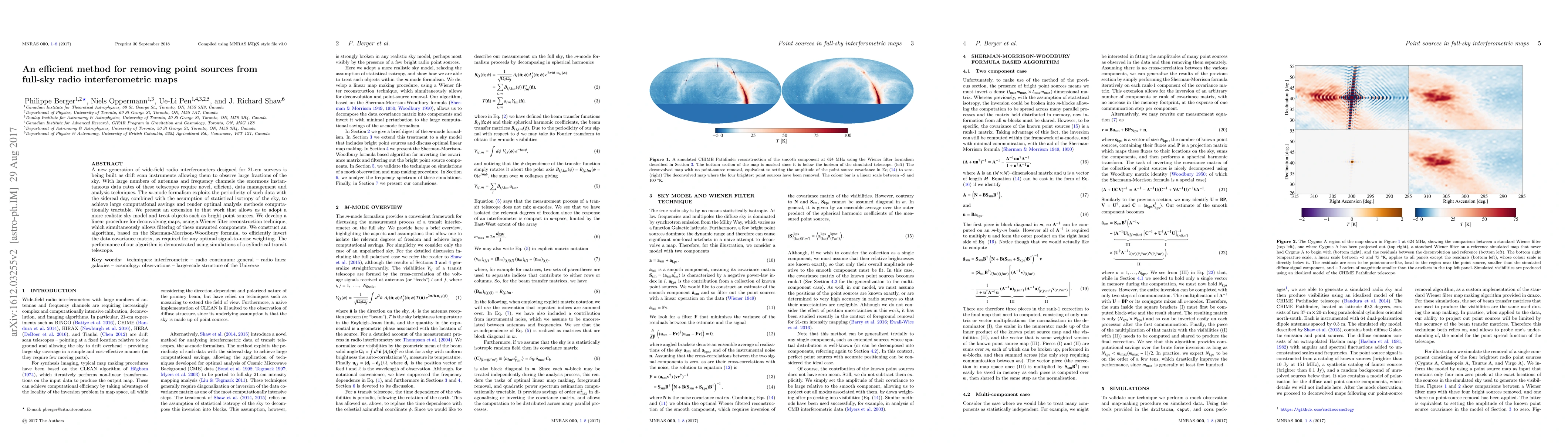 A new method for removing point sources from full-sky radio interferometric maps is presented, offering computational efficiency and realistic sky modeling capabilities.