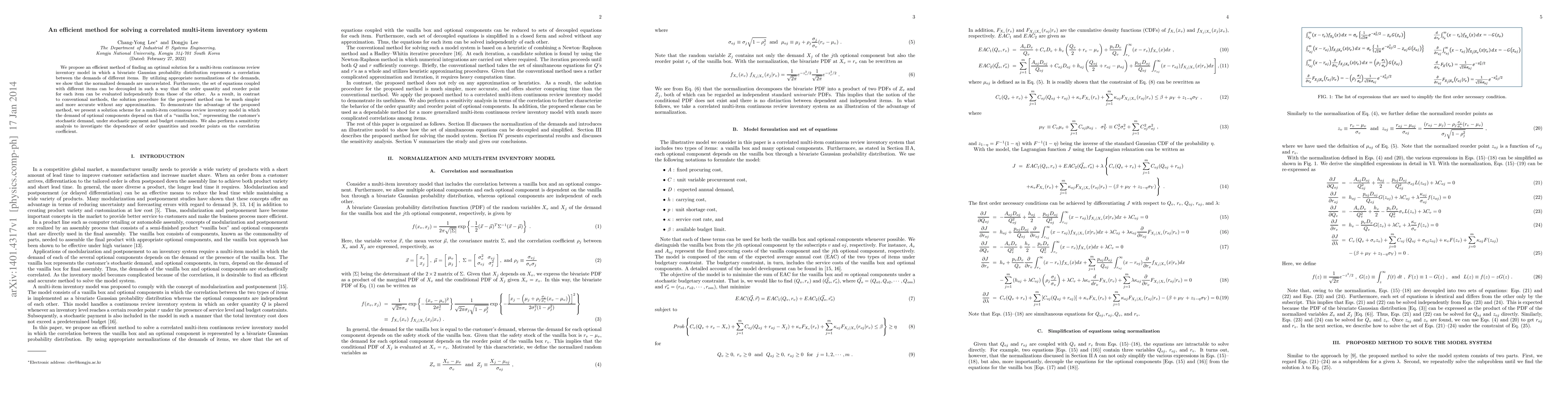 This paper proposes an efficient method for solving a correlated multi-item inventory system by decoupling the equations for different items, allowing independent evaluation of order quantities and reorder points. The method simplifies the solution process and maintains accuracy without approximations, demonstrated through a model where demand depends on customer stochastic behavior.