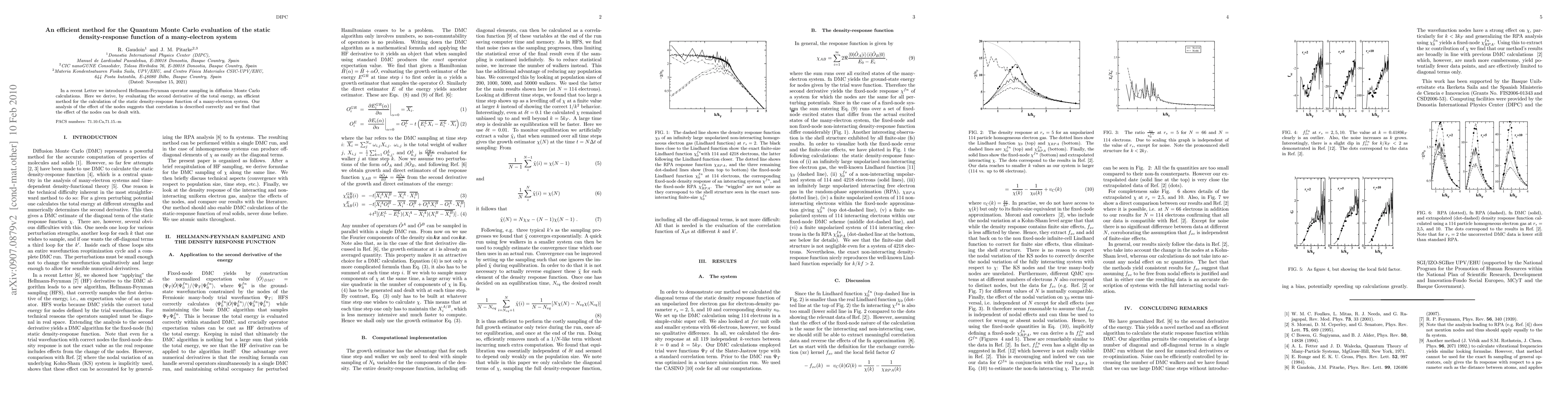In a recent Letter we introduced Hellmann-Feynman operator sampling in diffusion Monte Carlo calculations. Here we derive, by evaluating the second derivative of the total energy, an efficient method for the calculation of the static density-response function of a many-electron system. Our analysis of the effect of the nodes suggests that correlation is described correctly and we find that the effect of the nodes can be dealt with.