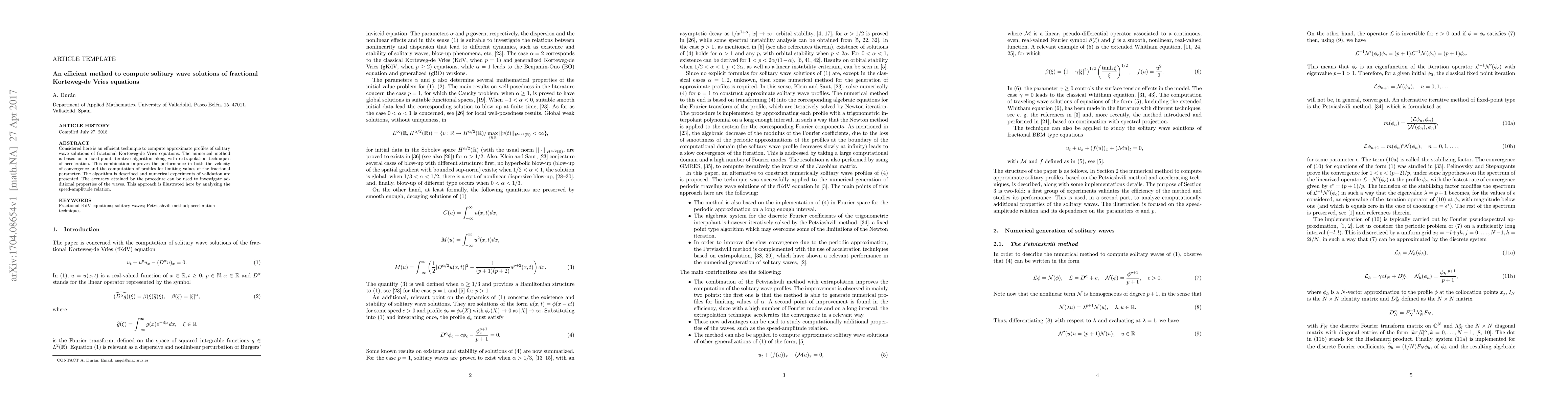 Considered here is an efficient technique to compute approximate profiles of solitary wave solutions of fractional Korteweg-de Vries equations. The numerical method is based on a fixed-point iterative algorithm along with extrapolation techniques of acceleration. This combination improves the performance in both the velocity of convergence and the computation of profiles for limiting values of the fractional parameter. The algorithm is described and numerical experiments of validation are presented. The accuracy attained by the procedure can be used to investigate additional properties of the waves. This approach is illustrated here by analyzing the speed-amplitude relation.