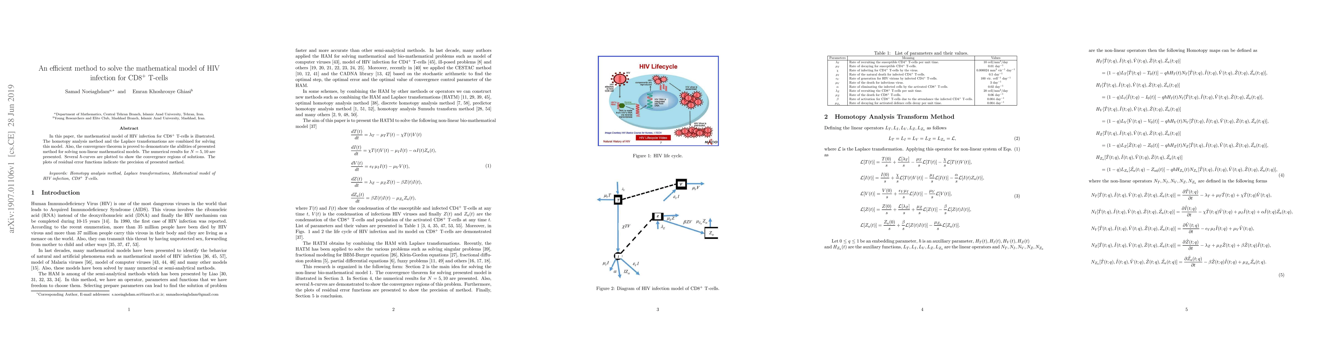 This paper proposes an efficient method combining the homotopy analysis method and Laplace transformations to solve the mathematical model of HIV infection in CD8+ T-cells. The convergence theorem is proven, and numerical results for N=5, 10 demonstrate the method's precision, supported by residual error plots and convergence region h-curves.