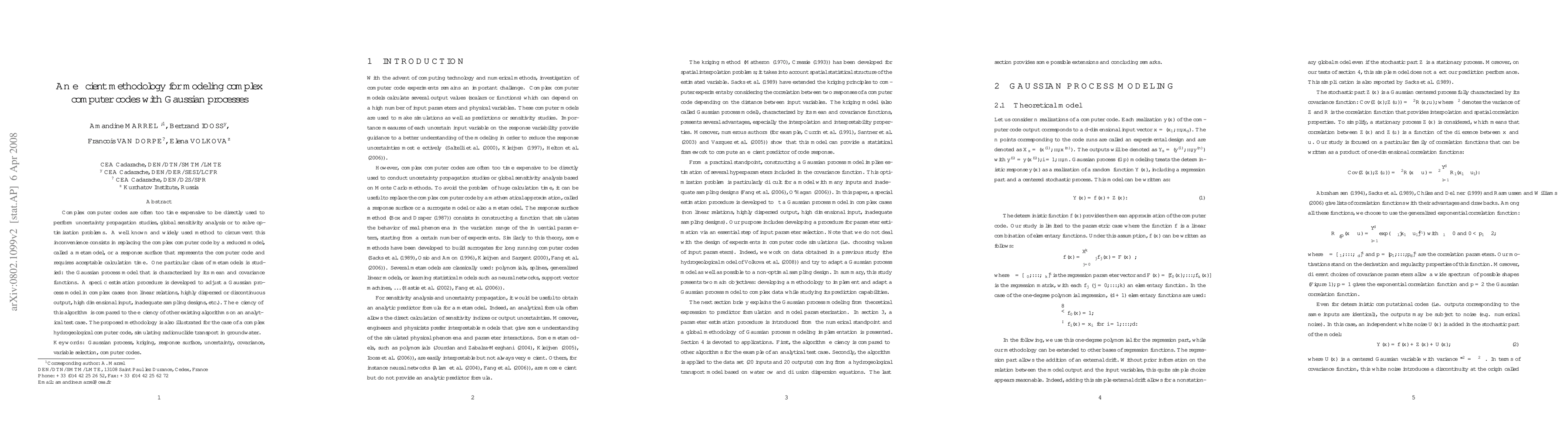 A new methodology for modeling complex computer codes using Gaussian processes is proposed, enabling efficient uncertainty propagation studies and optimization problems while reducing calculation time.