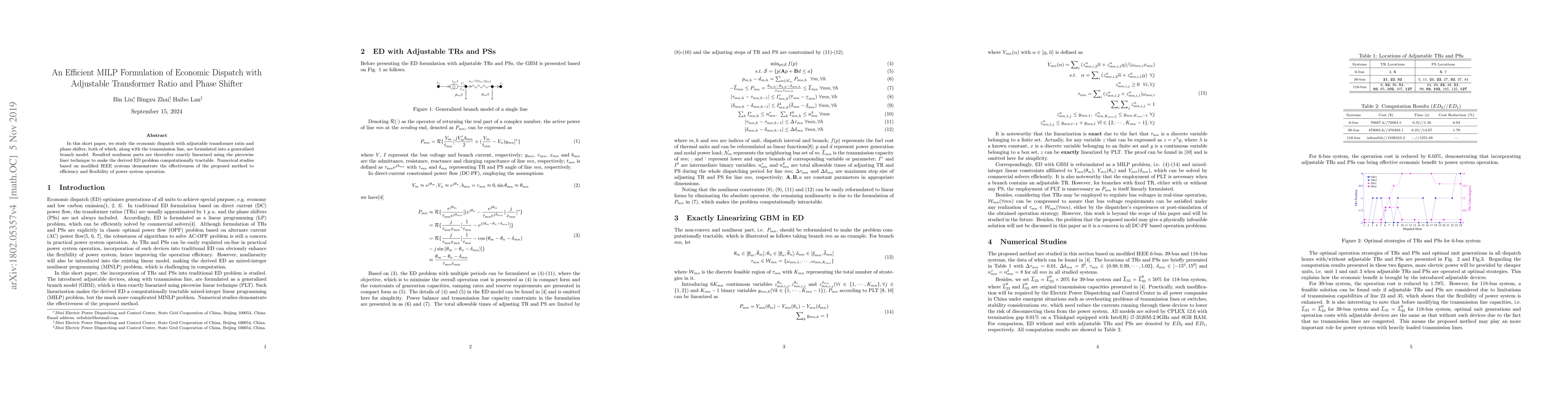In this short paper, we study the economic dispatch with adjustable transformer ratio and phase shifter, both of which, along with the transmission line, are formulated into a generalized branch model. Resulted nonlinear parts are thereafter exactly linearized using the piecewise liner technique to make the derived ED problem computationally tractable. Numerical studies based on modified IEEE systems demonstrate the effectiveness of the proposed method to efficiency and flexibility of power system operation.