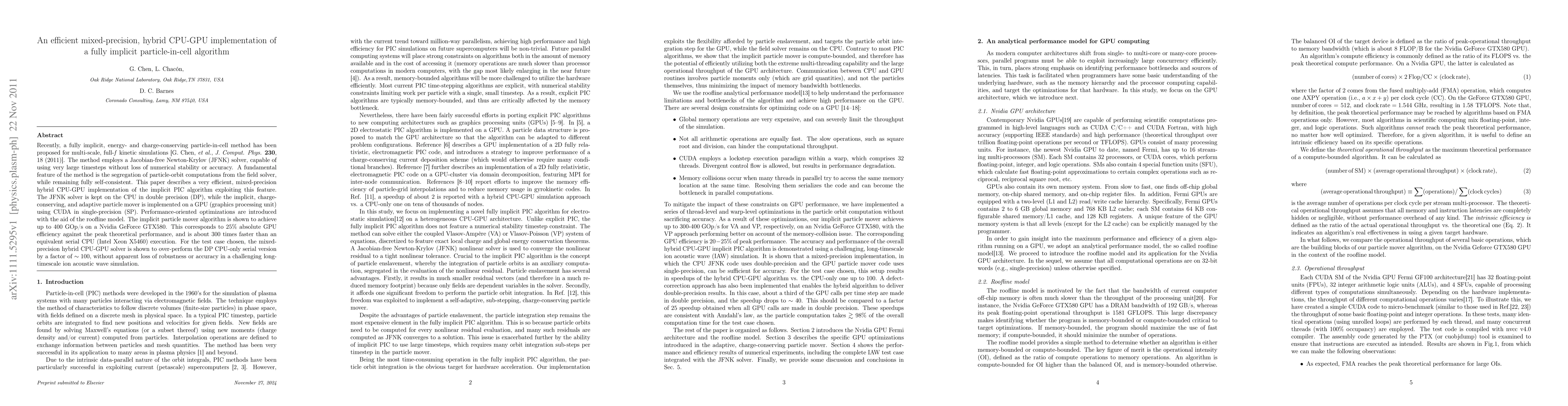 This research distinguishes itself by focusing on a fully implicit PIC method, segregating particle-orbit computations from the field solver, and efficiently utilizing mixed-precision computations on a hybrid CPU-GPU architecture.