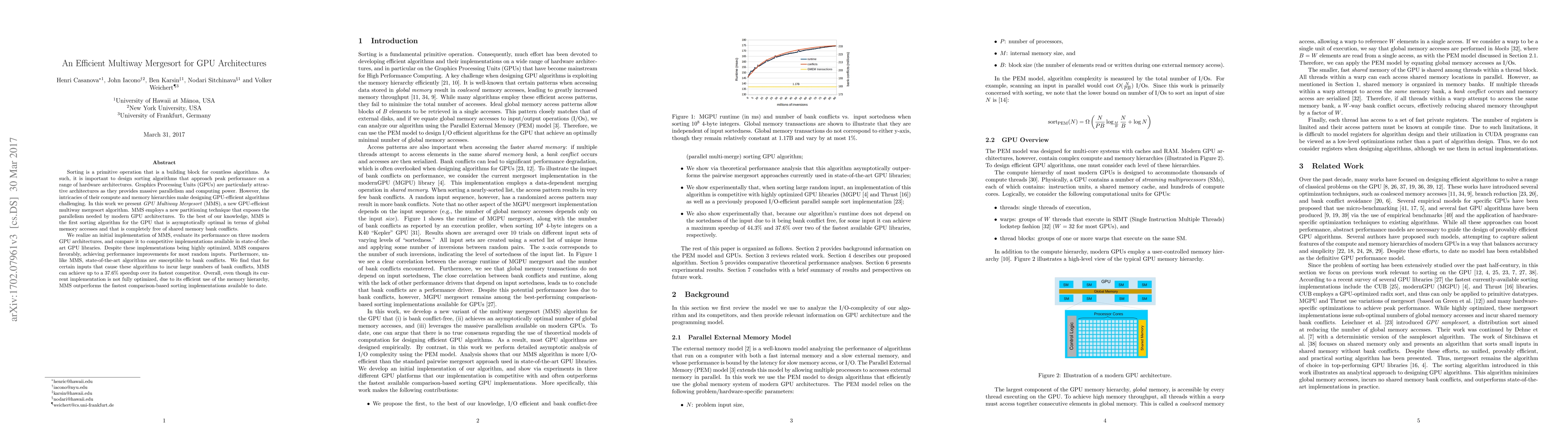 This paper presents GPU Multiway Mergesort (MMS), an efficient sorting algorithm optimized for GPU architectures. MMS leverages a novel partitioning technique that maximizes GPU parallelism and avoids shared memory bank conflicts, achieving optimal performance in terms of global memory accesses. Initial evaluations show MMS outperforms existing GPU sorting algorithms, especially under conditions that cause bank conflicts in competitors, achieving up to a 37.6% speedup.