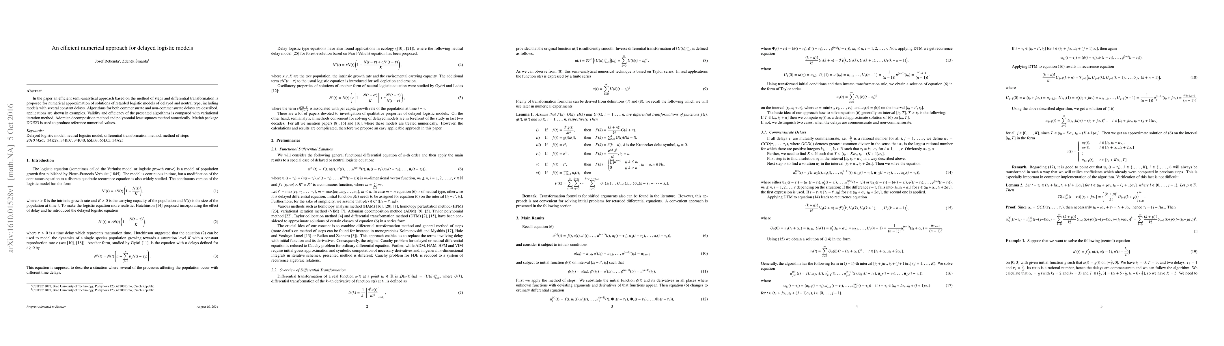In the paper an efficient semi-analytical approach based on the method of steps and differential transformation is proposed for numerical approximation of solutions of retarded logistic models of delayed and neutral type, including models with several constant delays. Algorithms for both commensurate and non-commensurate delays are described, applications are shown in examples. Validity and efficiency of the presented algorithms is compared with variational iteration method, Adomian decomposition method and polynomial least squares method numerically. Matlab package DDE23 is used to produce reference numerical values.