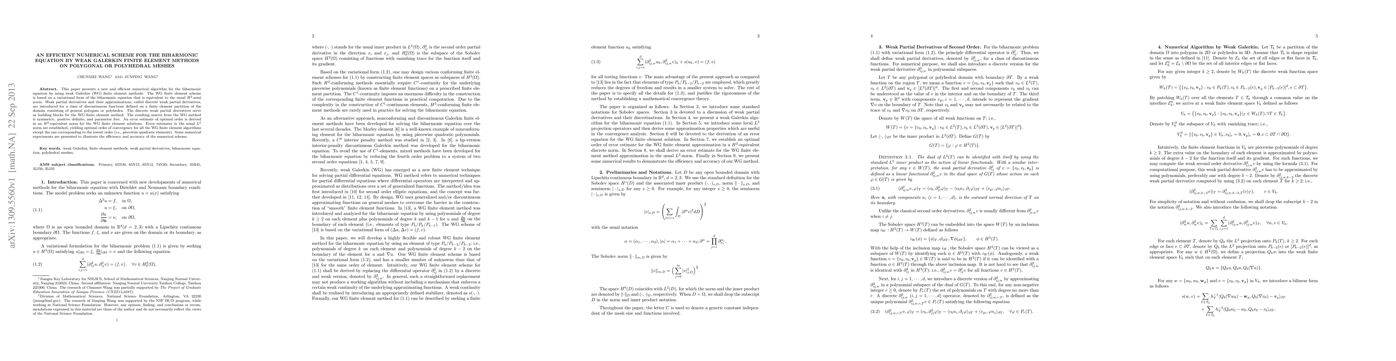This paper introduces an efficient numerical scheme for solving the biharmonic equation using weak Galerkin finite element methods on polygonal or polyhedral meshes, achieving optimal convergence and accuracy with symmetric, positive definite matrices. Numerical experiments validate the method's efficiency and accuracy.