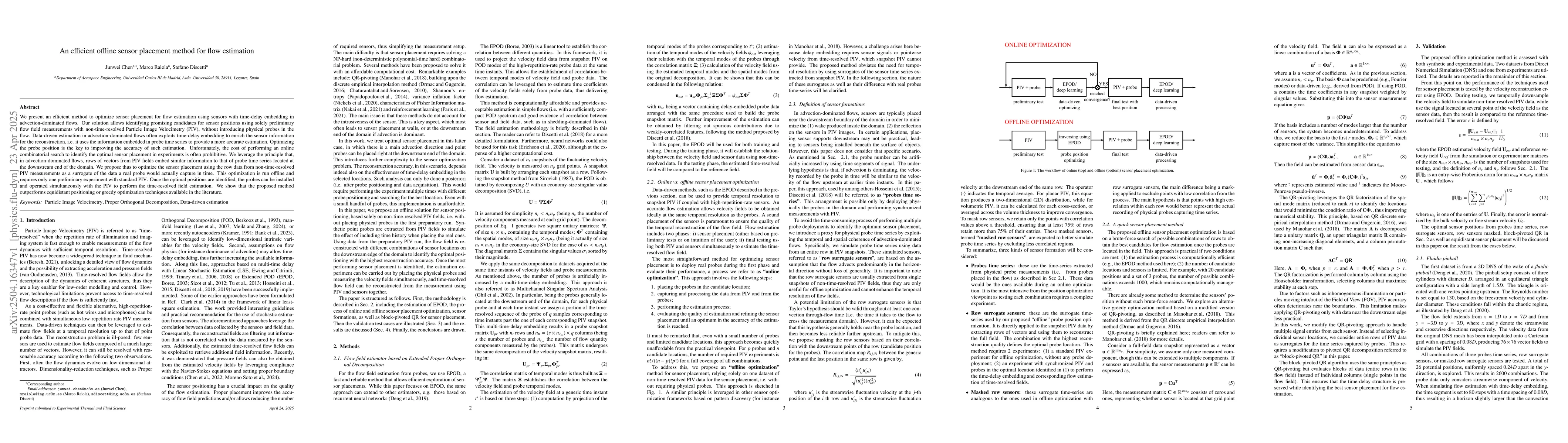 The research presents an offline optimization method for sensor placement in flow estimation using time-delay embedding in advection-dominated flows. This method utilizes preliminary flow field measurements with non-time-resolved Particle Image Velocimetry (PIV) to identify promising sensor positions, without physically inserting probes in the flow.