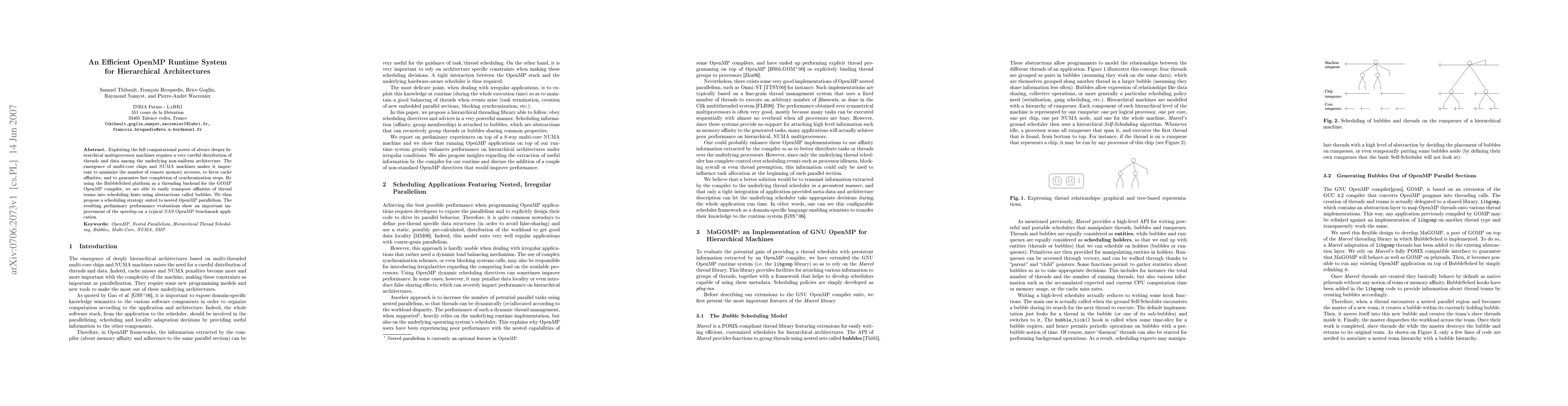 Researchers developed an efficient OpenMP runtime system for hierarchical architectures, improving performance in nested parallelism applications.