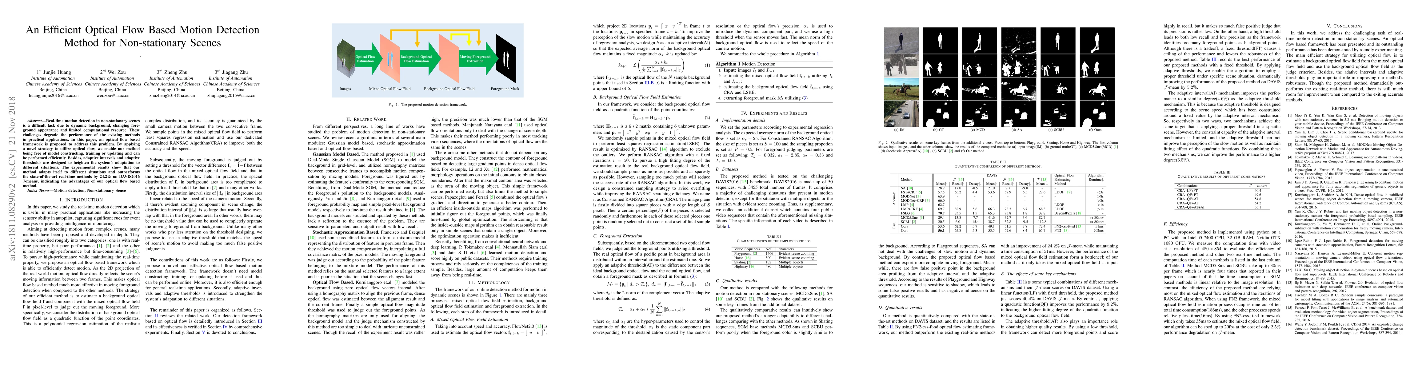 A new optical flow-based method for real-time motion detection in non-stationary scenes is proposed, outperforming state-of-the-art methods with adaptability to different situations.