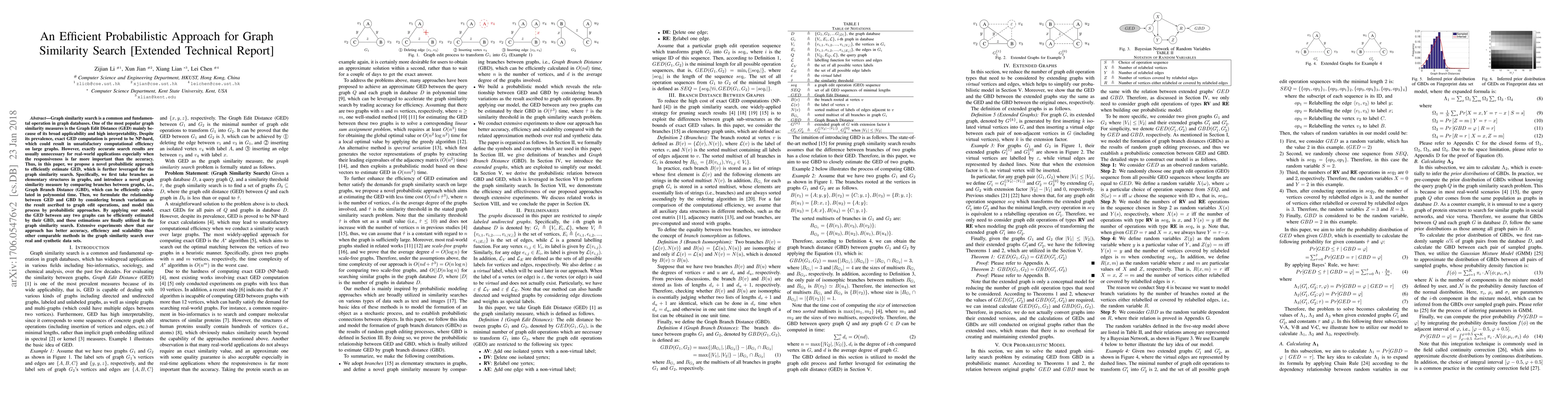 A new probabilistic approach estimates Graph Edit Distance (GED) using Graph Branch Distance (GBD), improving efficiency and scalability for graph similarity search.