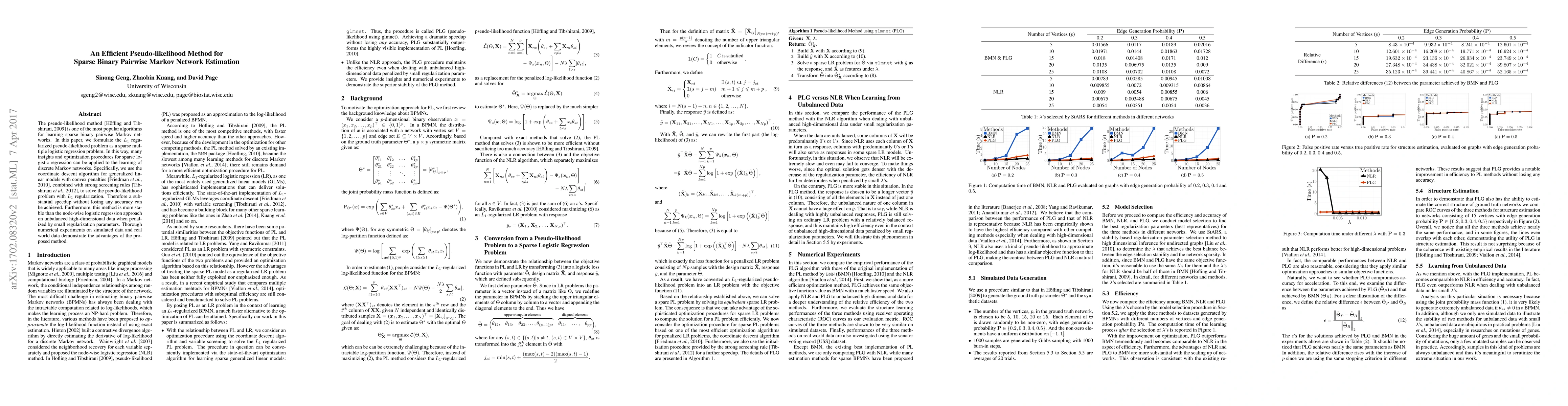 This paper proposes an efficient pseudo-likelihood method for estimating sparse binary pairwise Markov networks using $L_1$ regularization, formulated as a sparse multiple logistic regression problem. The method employs coordinate descent with strong screening rules, achieving speedup and stability over traditional node-wise logistic regression, especially on unbalanced high-dimensional data.